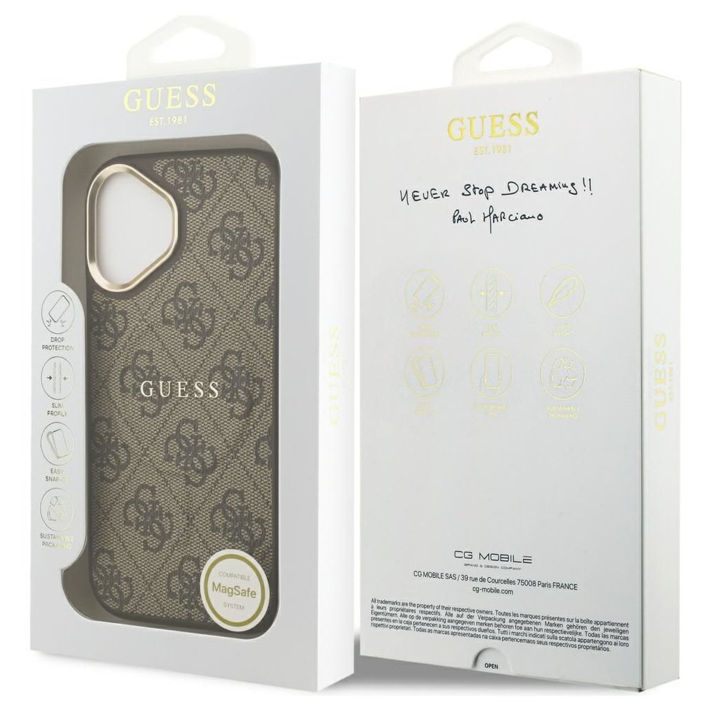 Štýlové a GUESS pre IPHONE 17 s MagSafe GUHMP17SP4MSEGCW (PU 4G W/ Classic) hnedé je kvalitný obal na Váš telefón vyrobený z odolných materiálov, s prepracovanými detailmi a dizajnom.