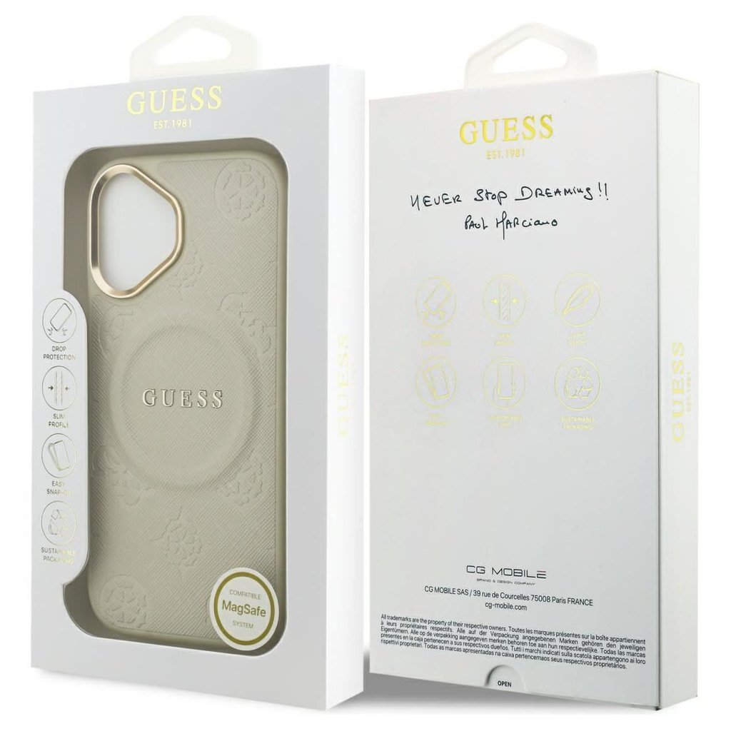 Štýlové a GUESS pre IPHONE 17 s MagSafe GUHMP17SPSAMSECE (PU W/ Peony Hot Stamp) béžová je kvalitný obal na Váš telefón vyrobený z odolných materiálov, s prepracovanými detailmi a dizajnom.
