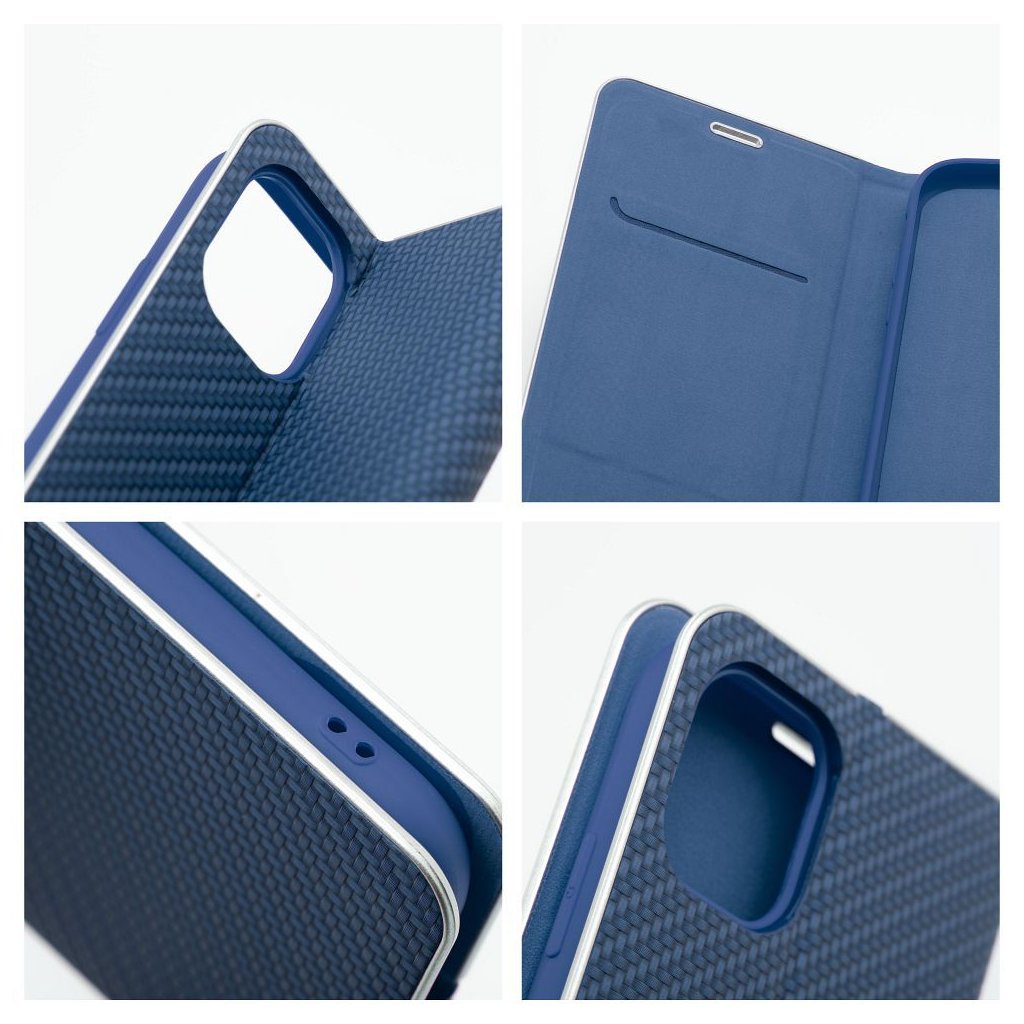 Peňaženkové puzdro LUNA Book Carbon pre IPHONE 7 / 8 / SE 2020 / SE 2022 modré je vyrobené z kvalitnej mäkkej technickej kože s atraktívnou textúrou, ktorá je po okrajoch vystužená hliníkovým rámom. Puzdro je preto nielen veľmi elegantné, ale aj pevnejšie a stabilnejšie. Mäkká semišová úprava vnútornej strany puzdra zaručuje skvelú ochranu displeja pred poškriabaním.