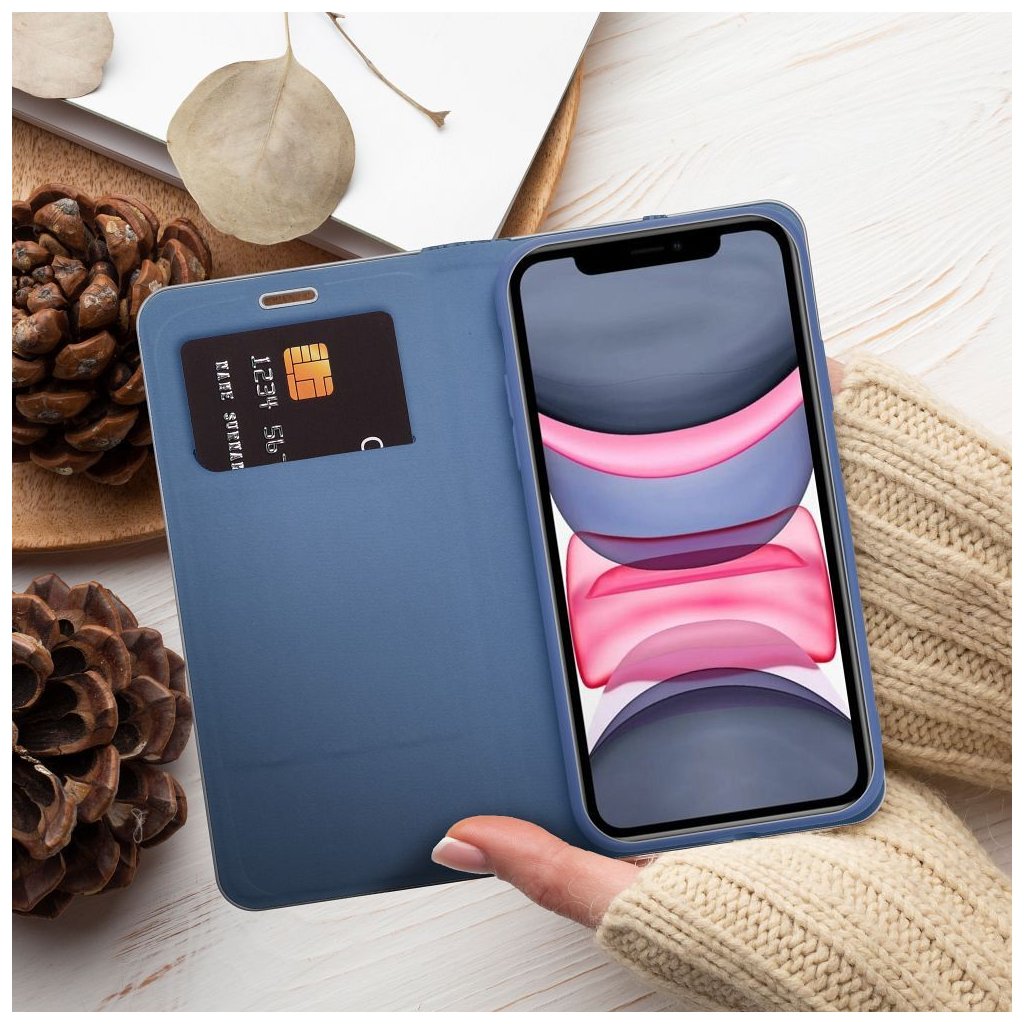 Vo vnútri knižkové puzdra Luna book nájdete flexibilný silikónový držiak, ktorý je prispôsobený pre váš mobil. Udrží váš telefón v stabilnej polohe a chráni jeho hrany. Na vnútornej strane sa nachádza aj vrecko, ktoré môžete využiť ako peňaženku alebo úložný priestor na doklady či karty.