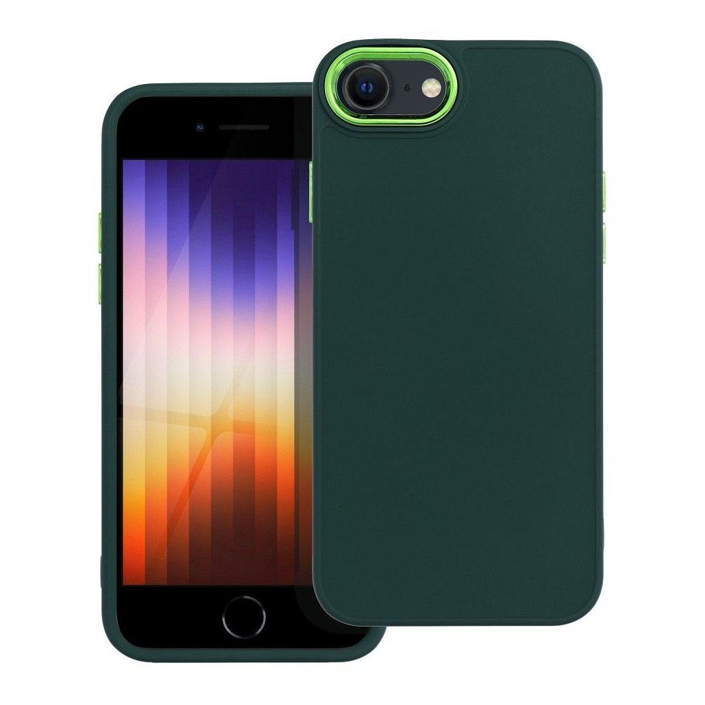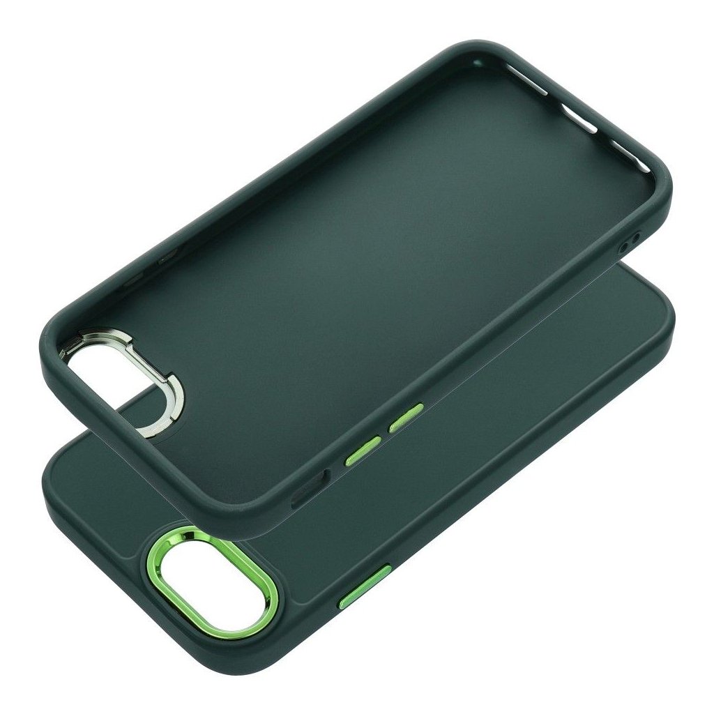 Tento štýlový kryt FRAME Case pre IPHONE SE 2022 zelený bude váš elegantný a praktický doplnok pre váš outfit. Má zosilnené okraje, mäkký materiál TPU a vyvýšený rám okolo ostrovčeka fotoaparátu. Je vyrobený z PC a potiahnutý pozinkovanou lesklou vrstvou v odtieni, ktorý dokonale dopĺňa farbu celého puzdra. Rovnaký farebný povrch je použitý aj na bočných tlačidlách.