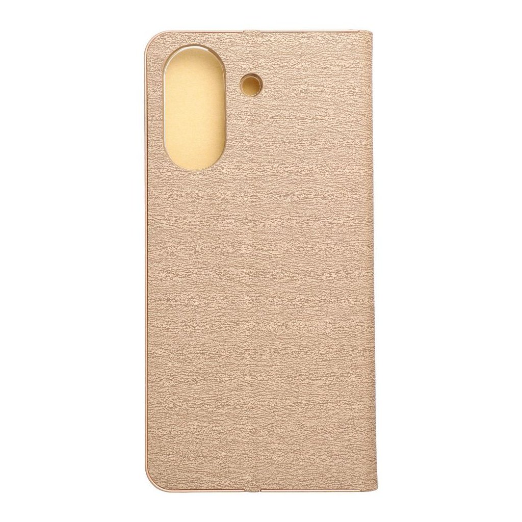 Peňaženkové puzdro LUNA Book pre Xiaomi Redmi 13C / POCO C65 zlaté je vyrobené z kvalitnej mäkkej technickej kože s atraktívnou textúrou, ktorá je po okrajoch vystužená hliníkovým rámom. Puzdro je preto nielen veľmi elegantné, ale aj pevnejšie a stabilnejšie. Mäkká semišová úprava vnútornej strany puzdra zaručuje skvelú ochranu displeja pred poškriabaním.