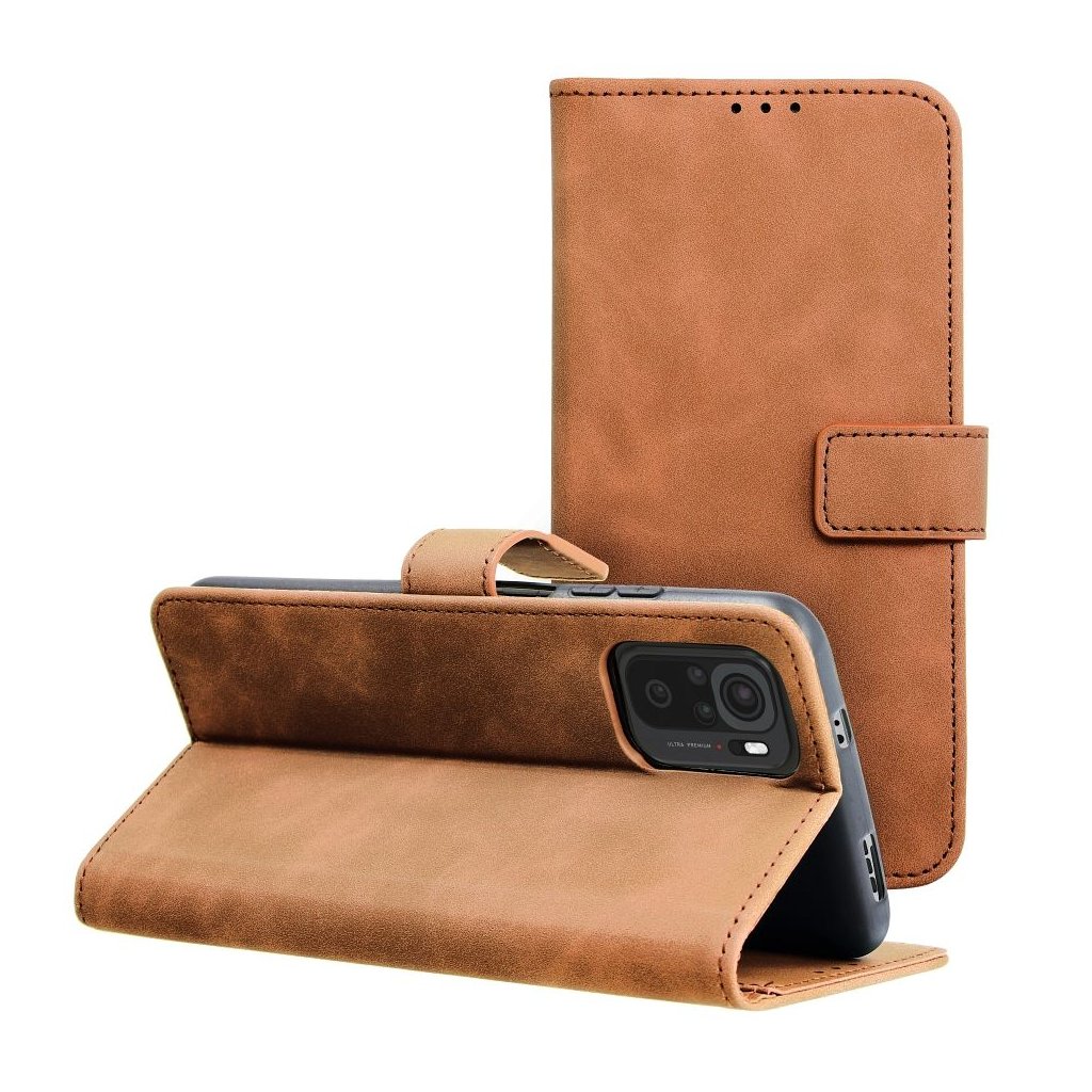 Zatvárací peňaženkový obal TENDER Book pre XIAOMI Redmi Note 11 / 11S hnedý v príjemnej imitácii kože v decentných farbách je ako stvorené pre každého, kto má skutočne štýl. Materiál je na dotyk veľmi príjemný a mäkký, telefónu ale poskytuje plnú ochranu zo všetkých strán.