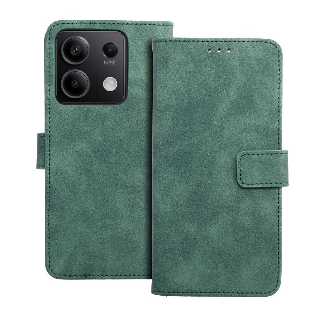 Zatvárací peňaženkový obal TENDER Book pre XIAOMI Redmi Note 13 5G zelený v príjemnej imitácii kože v decentných farbách je ako stvorené pre každého, kto má skutočne štýl. Materiál je na dotyk veľmi príjemný a mäkký, telefónu ale poskytuje plnú ochranu zo všetkých strán.