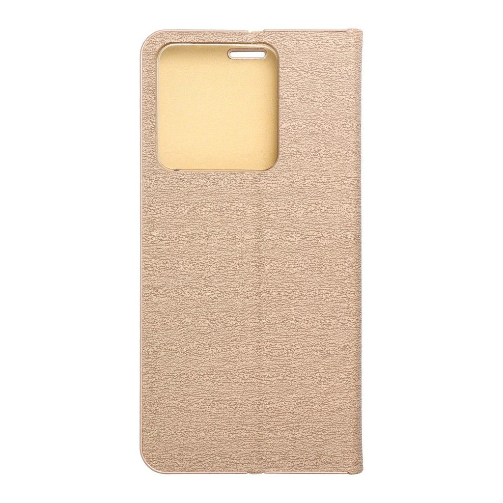 Peňaženkové puzdro LUNA Book pre XIAOMI Redmi Note 13 5G zlaté je vyrobené z kvalitnej mäkkej technickej kože s atraktívnou textúrou, ktorá je po okrajoch vystužená hliníkovým rámom. Puzdro je preto nielen veľmi elegantné, ale aj pevnejšie a stabilnejšie. Mäkká semišová úprava vnútornej strany puzdra zaručuje skvelú ochranu displeja pred poškriabaním.