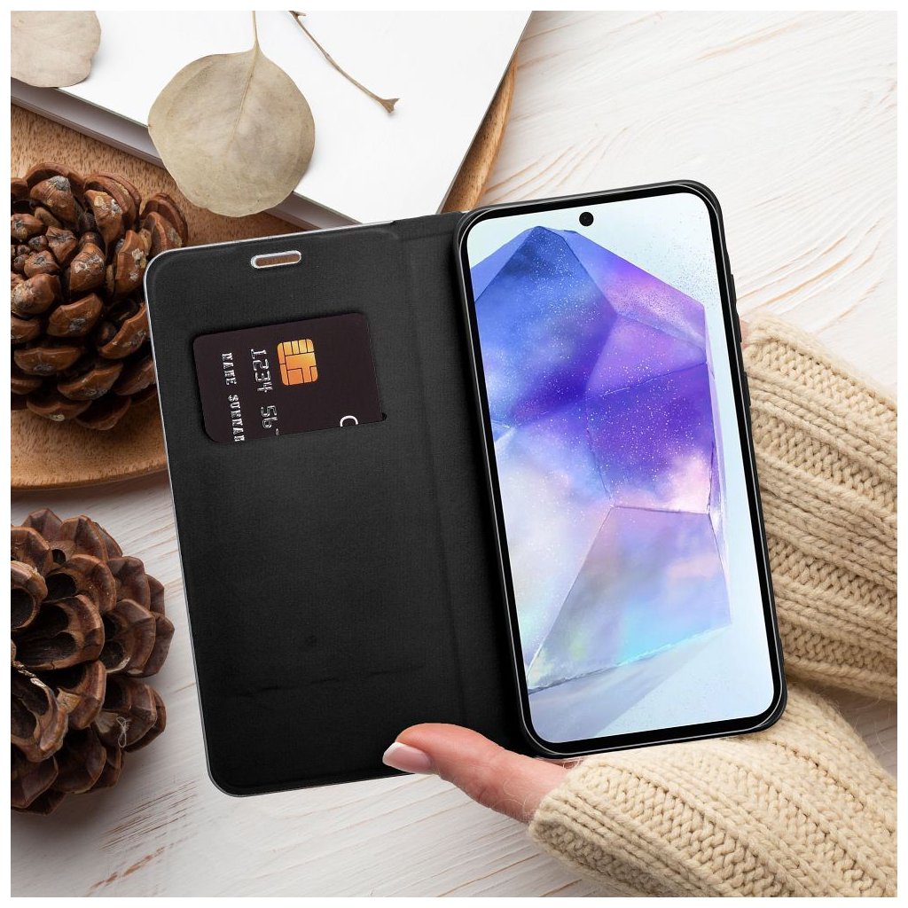 Vo vnútri knižkové puzdra Luna book nájdete flexibilný silikónový držiak, ktorý je prispôsobený pre váš mobil. Udrží váš telefón v stabilnej polohe a chráni jeho hrany. Na vnútornej strane sa nachádza aj vrecko, ktoré môžete využiť ako peňaženku alebo úložný priestor na doklady či karty.