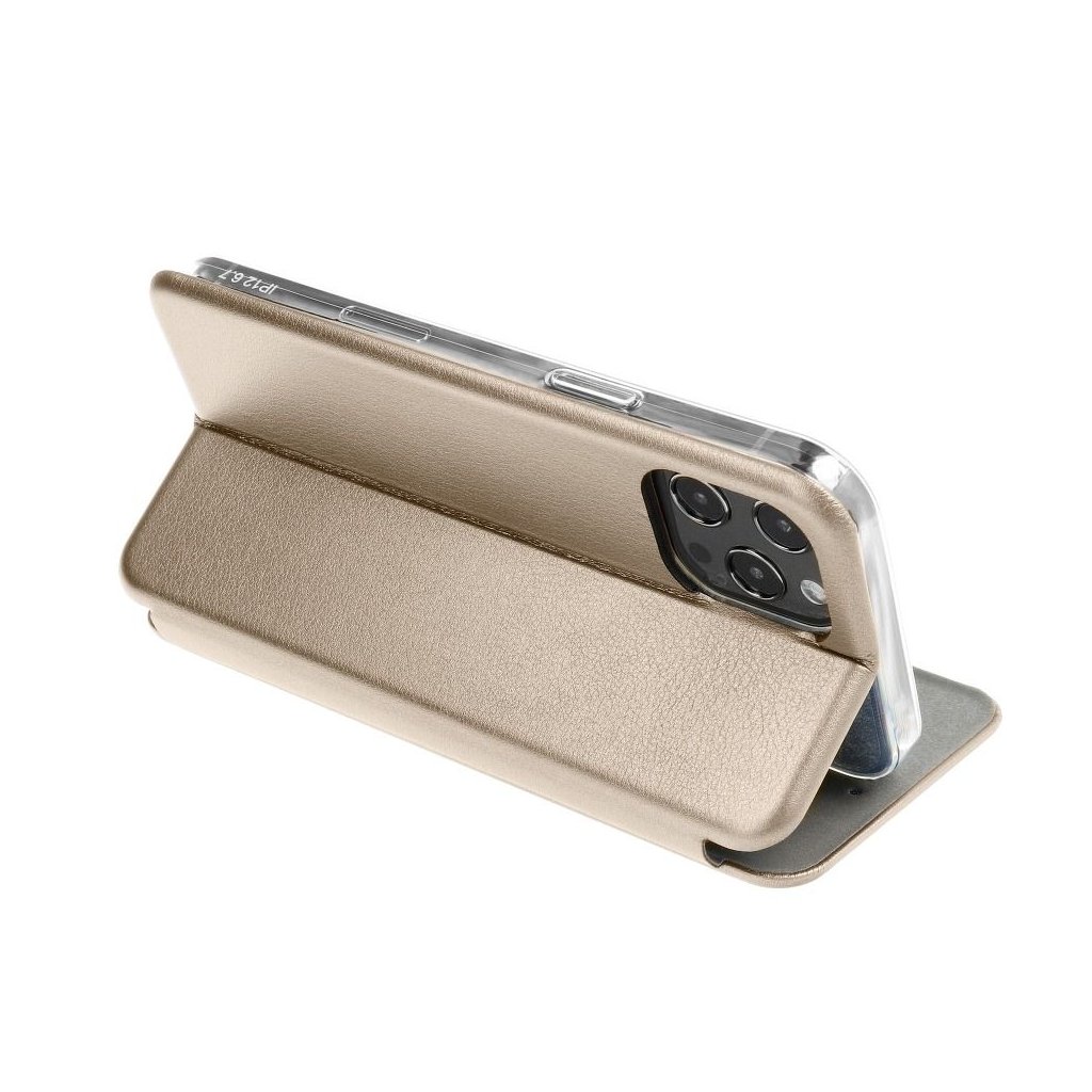 Peňaženkový obal ELEGANCE case pre SAMSUNG A53 5G zlatý je vyrobený z vysoko odolného plastu, ktorý je potiahnutý mäkkou technickou kožou. Váš telefón tak bude dokonale ochránený pred prípadným poškriabaním.