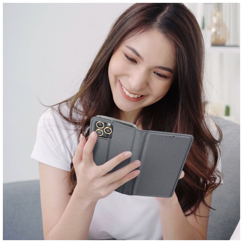 Peňaženkový alebo takzvaný knižkový Obal SMART CASE Book pre SAMSUNG J3 2017 šedý je vyrobený z mäkkej technickej kože, ktorá je opatrená povrchovou úpravou s metalickou štruktúrou. Vďaka tomu sa puzdro za denného svetla ľahko leskne. Prešívanie na okrajoch zdôrazňuje jeho elegantný vzhľad a puzdro je vďaka nemu aj pevnejšie.