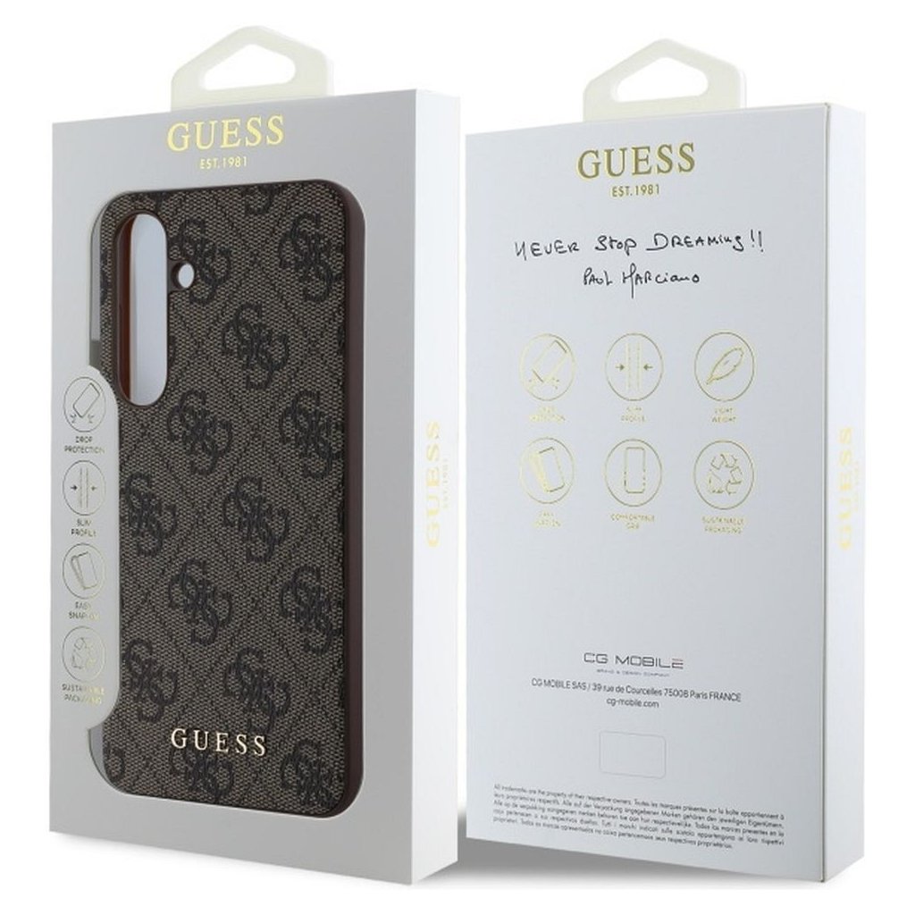 Štýlové a GUESS pre SAMSUNG S24 FE GUHCS24FEG4GFBR (HC PU 4G Metal Logo) hnedé je kvalitný obal na Váš telefón vyrobený z odolných materiálov, s prepracovanými detailmi a dizajnom.