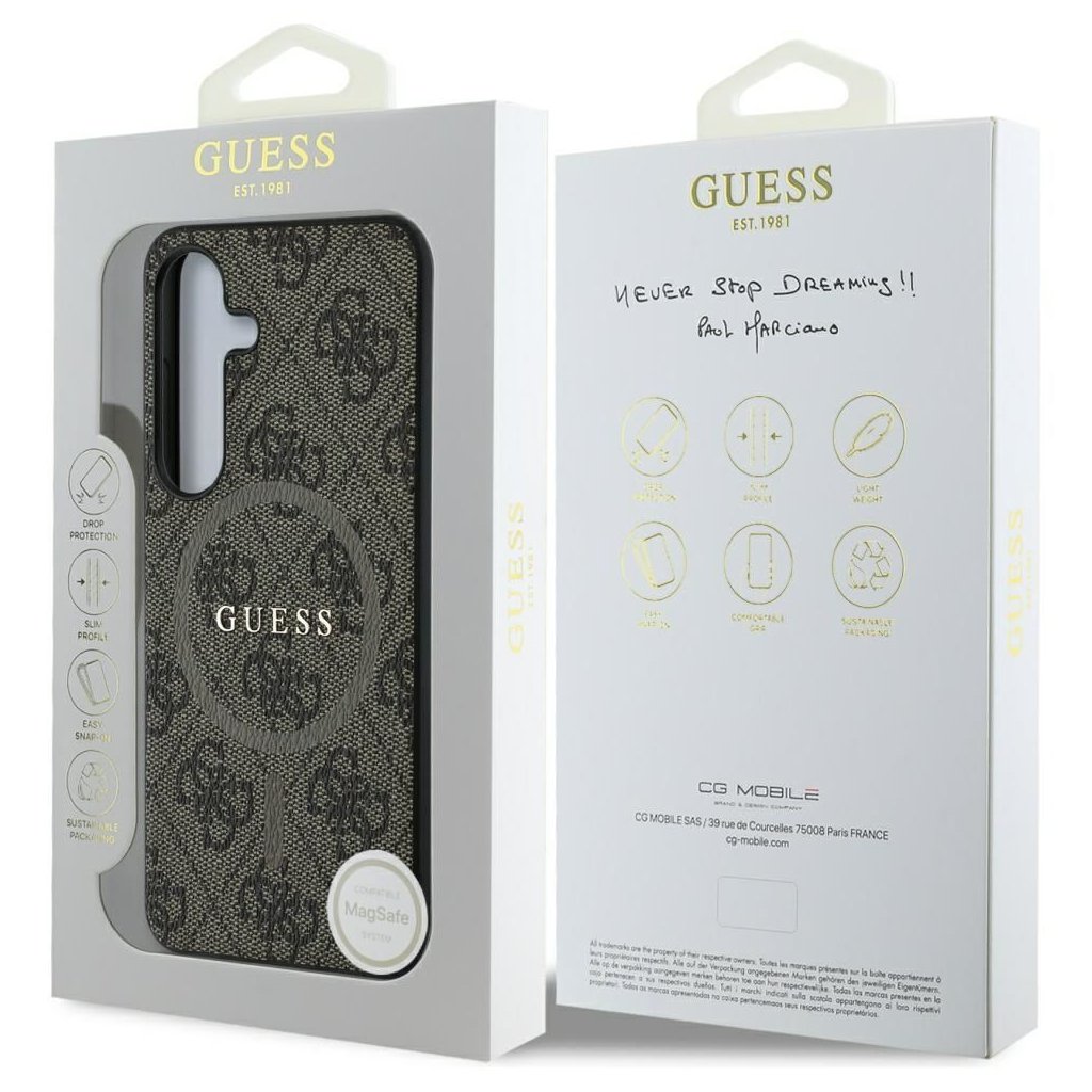 Štýlové a GUESS pre SAMSUNG S25 Plus GUHMS25MG4GFRW (Magnetic PU 4G Ring Classic Logo) hnedé je kvalitný obal na Váš telefón vyrobený z odolných materiálov, s prepracovanými detailmi a dizajnom.