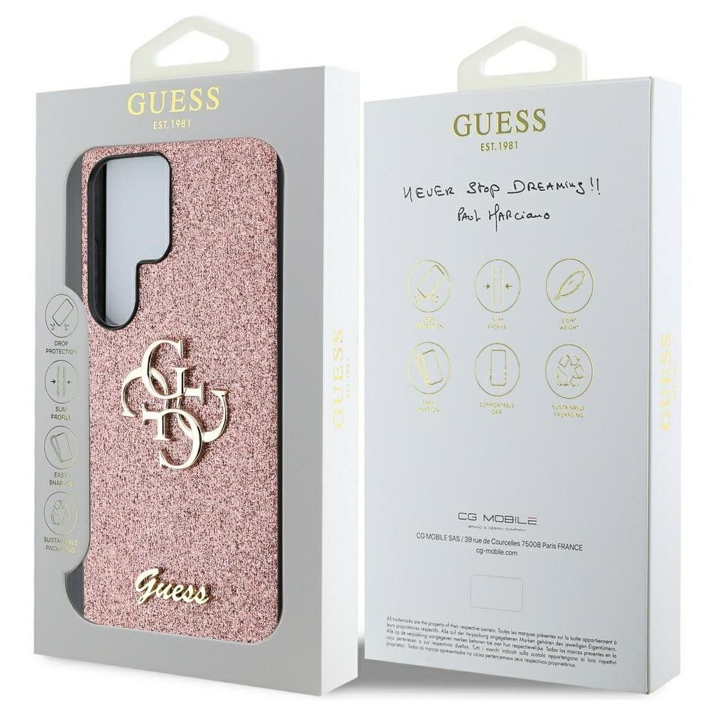 Štýlové a GUESS pre SAMSUNG S25 Ultra GUHCS25LHG4SGP (Fixed Glitter Big 4G) ružové je kvalitný obal na Váš telefón vyrobený z odolných materiálov, s prepracovanými detailmi a dizajnom.