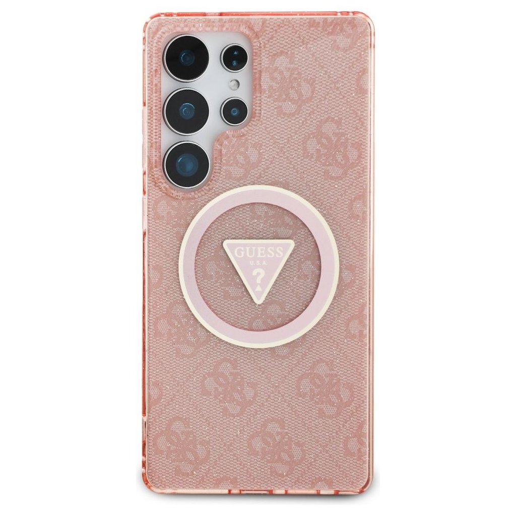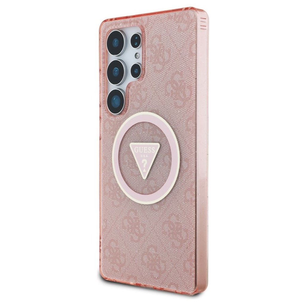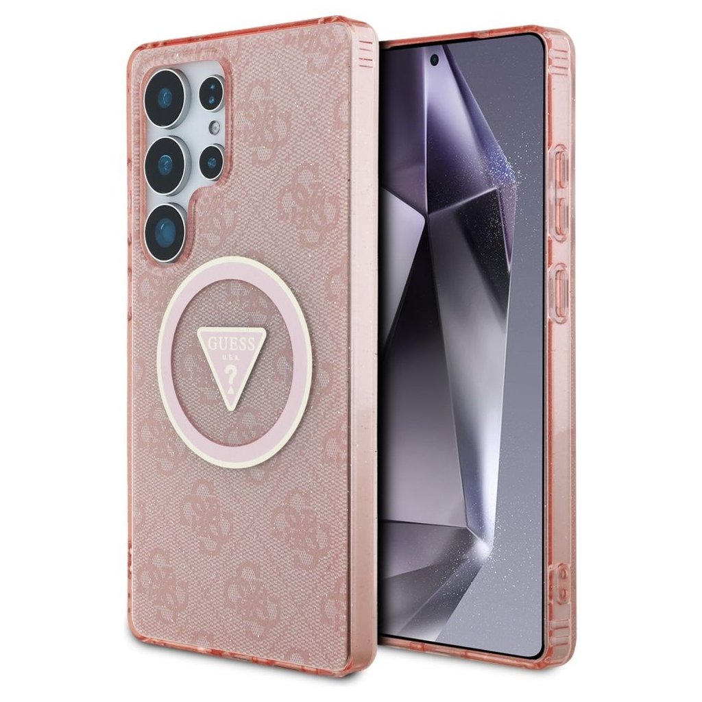 Štýlové a GUESS pre SAMSUNG S25 Ultra GUHMS25LHG4PRTGP (Magnetic IML Metal Glitter 4G Circle Triangle) ružové je kvalitný obal na Váš telefón vyrobený z odolných materiálov, s prepracovanými detailmi a dizajnom.