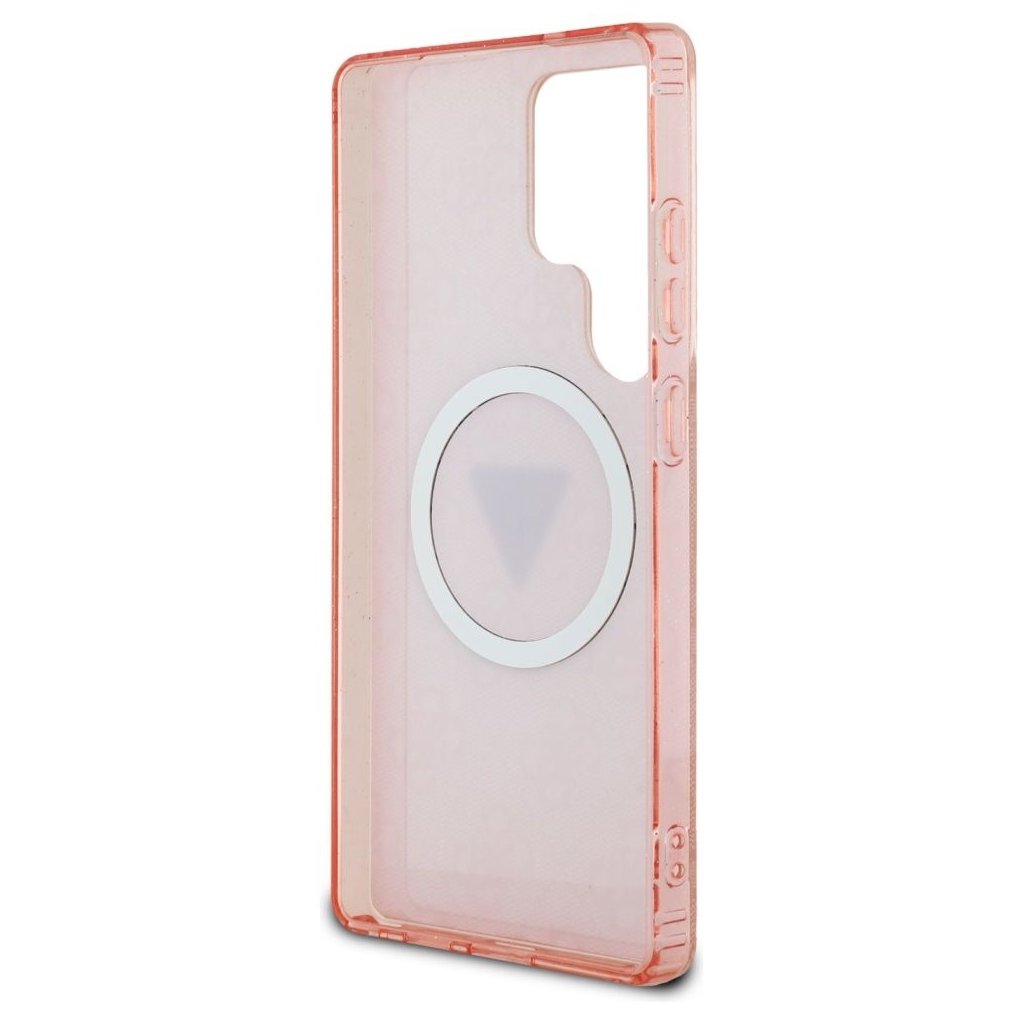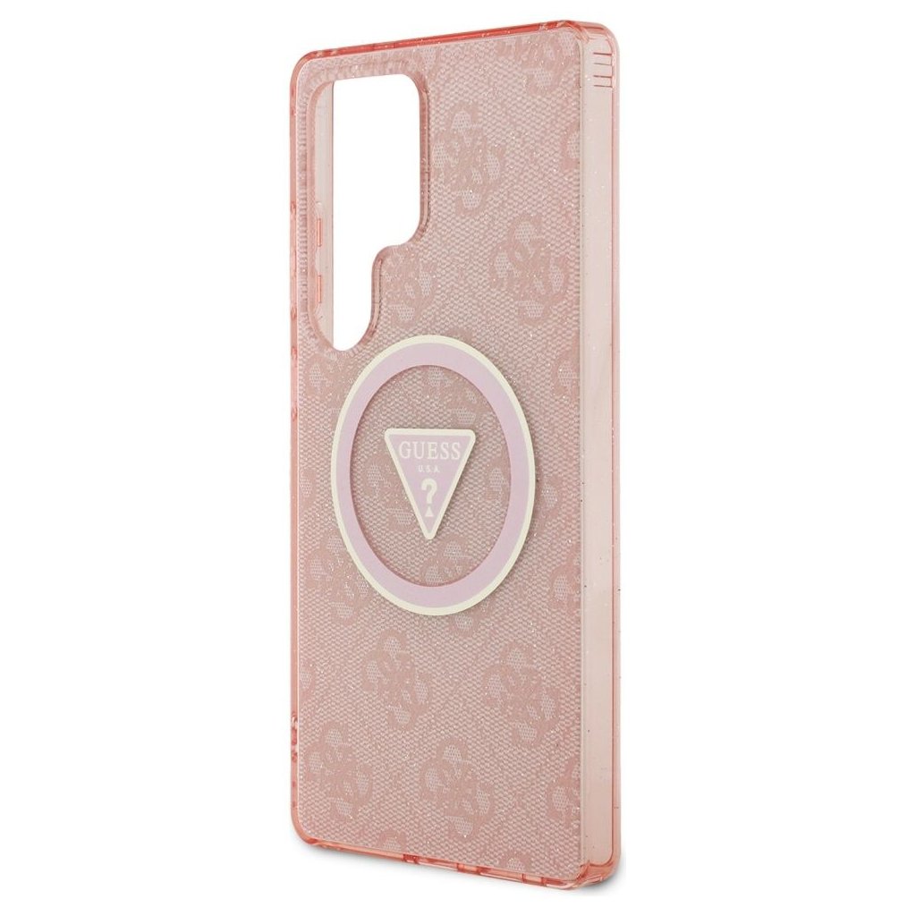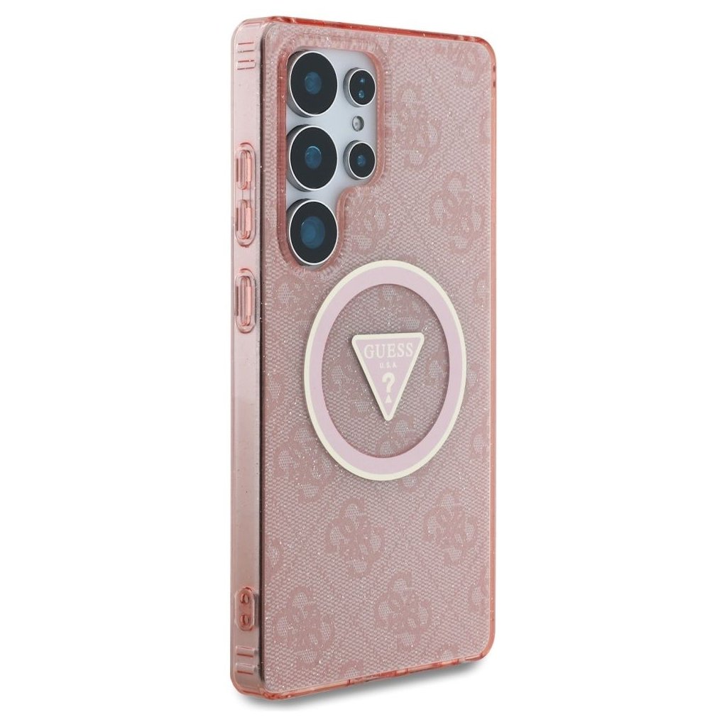 Štýlové a GUESS pre SAMSUNG S25 Ultra GUHMS25LHG4PRTGP (Magnetic IML Metal Glitter 4G Circle Triangle) ružové je kvalitný obal na Váš telefón vyrobený z odolných materiálov, s prepracovanými detailmi a dizajnom.