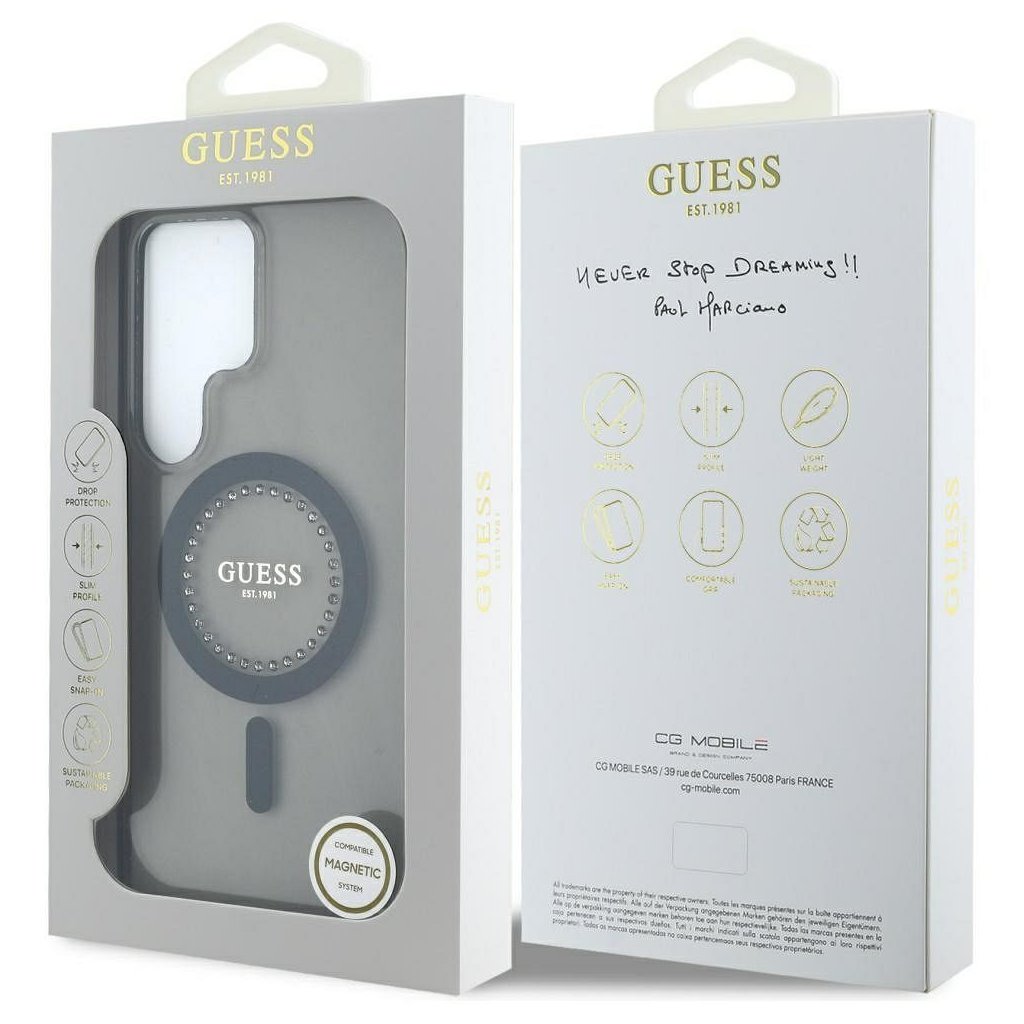 Štýlové a GUESS pre SAMSUNG S25 Ultra GUHMS25LPFTDTEK (Magnetic IML Rhinestones) čierne je kvalitný obal na Váš telefón vyrobený z odolných materiálov, s prepracovanými detailmi a dizajnom.