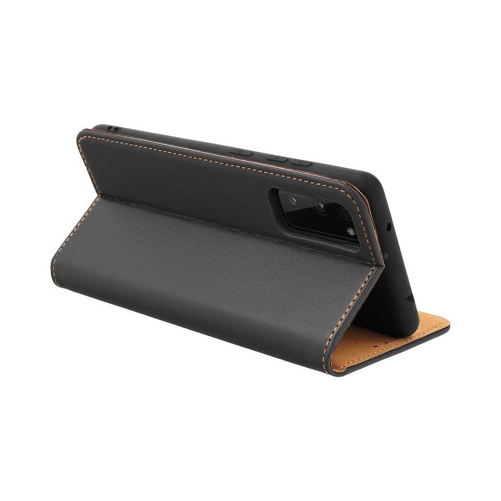 Elegantné kožené puzdro SMART PRO Book pre SAMSUNG A53 5G čierne z vysoko kvalitných materiálov (prírodnej kože a TPU) a veľmi starostlivým spracovaním je určené pre náročných užívateľov, ktorí majú radi svoj štýl. Konštrukcia je vystužená, ale k dodatočnej ochrane i estetickej funkcii prispievajú aj švy po okrajoch, vyvedené vo farbe vnútornej časti puzdra.