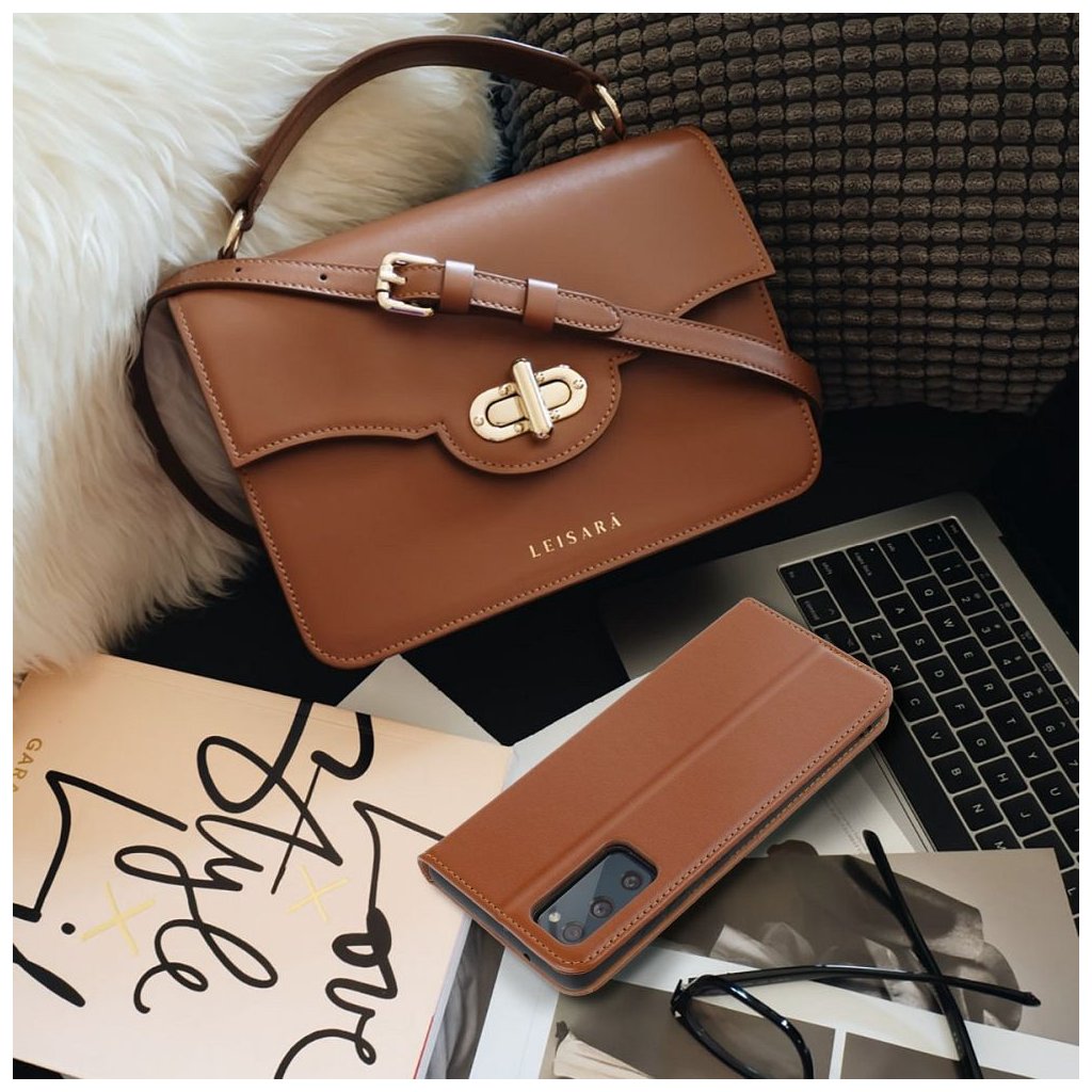 Elegantné kožené puzdro SMART PRO Book pre SAMSUNG A34 5G hnedé z vysoko kvalitných materiálov (prírodnej kože a TPU) a veľmi starostlivým spracovaním je určené pre náročných užívateľov, ktorí majú radi svoj štýl. Konštrukcia je vystužená, ale k dodatočnej ochrane i estetickej funkcii prispievajú aj švy po okrajoch, vyvedené vo farbe vnútornej časti puzdra.