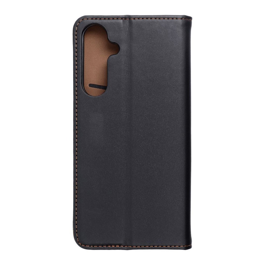 Elegantné kožené puzdro SMART PRO Book pre SAMSUNG A55 5G čierne z vysoko kvalitných materiálov (prírodnej kože a TPU) a veľmi starostlivým spracovaním je určené pre náročných užívateľov, ktorí majú radi svoj štýl. Konštrukcia je vystužená, ale k dodatočnej ochrane i estetickej funkcii prispievajú aj švy po okrajoch, vyvedené vo farbe vnútornej časti puzdra.
