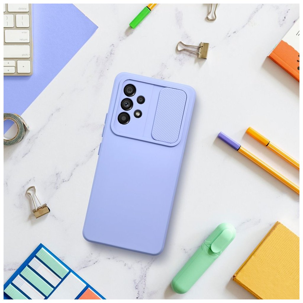 Moderný kryt SLIDE case pre SAMSUNG A35 5G levanduľový zaručí bezpečnosť telefónu v každej situácii. Je vyrobený z mäkkého, flexibilného materiálu a má užitočný posúvny kryt, ktorý zakrýva kameru a zaisťuje súkromie.