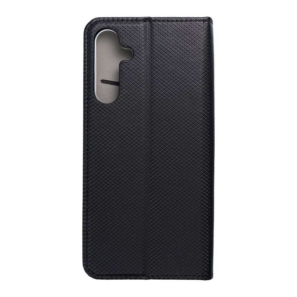 Peňaženkový alebo takzvaný knižkový Obal SMART CASE Book pre SAMSUNG A16 čierny je vyrobený z mäkkej technickej kože, ktorá je opatrená povrchovou úpravou s metalickou štruktúrou. Vďaka tomu sa puzdro za denného svetla ľahko leskne. Prešívanie na okrajoch zdôrazňuje jeho elegantný vzhľad a puzdro je vďaka nemu aj pevnejšie.