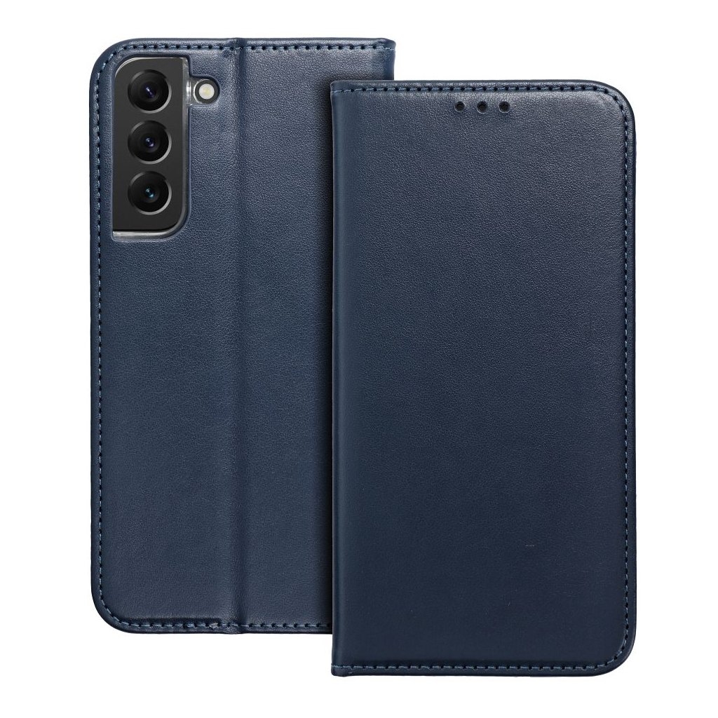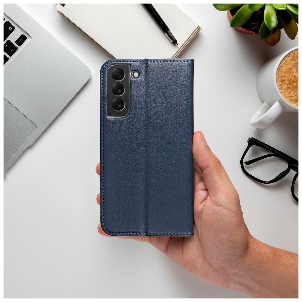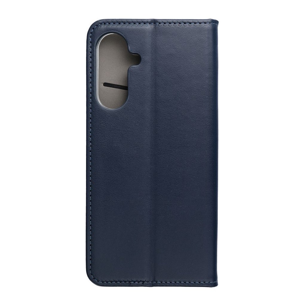 Peňaženkový obal SMART MAGNETO Book pre SAMSUNG A17 tmavo modrý s magnetickým zapínaním je klasické puzdro na telefón s funkciou peňaženky a stojana na TV. Je vyrobené z metalizovaného materiálu, podšité mäkkou tkaninou, ktorá chráni obrazovku pred poškriabaním.