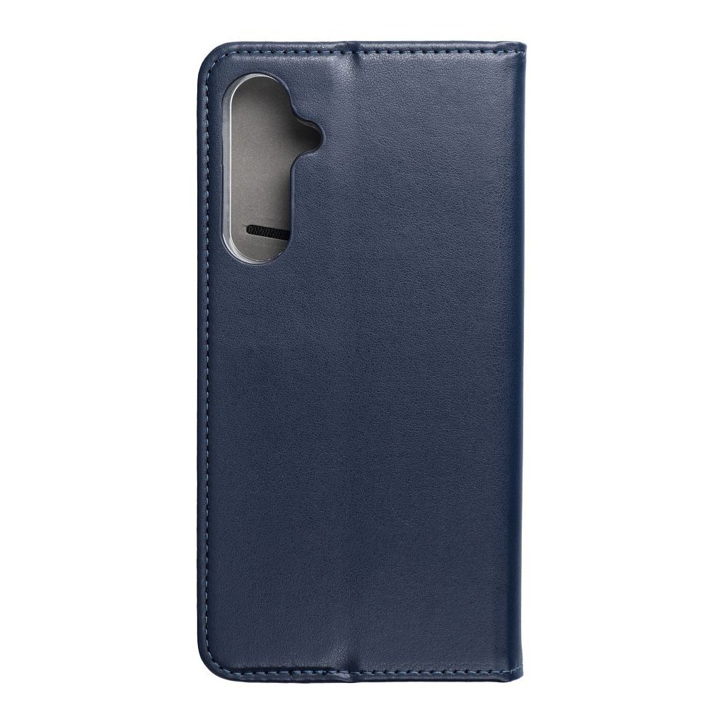 Peňaženkový obal SMART MAGNETO Book pre SAMSUNG S23 FE tmavo modrý s magnetickým zapínaním je klasické puzdro na telefón s funkciou peňaženky a stojana na TV. Je vyrobené z metalizovaného materiálu, podšité mäkkou tkaninou, ktorá chráni obrazovku pred poškriabaním.