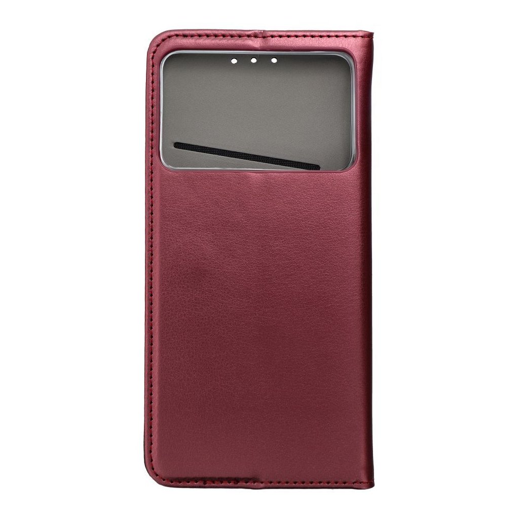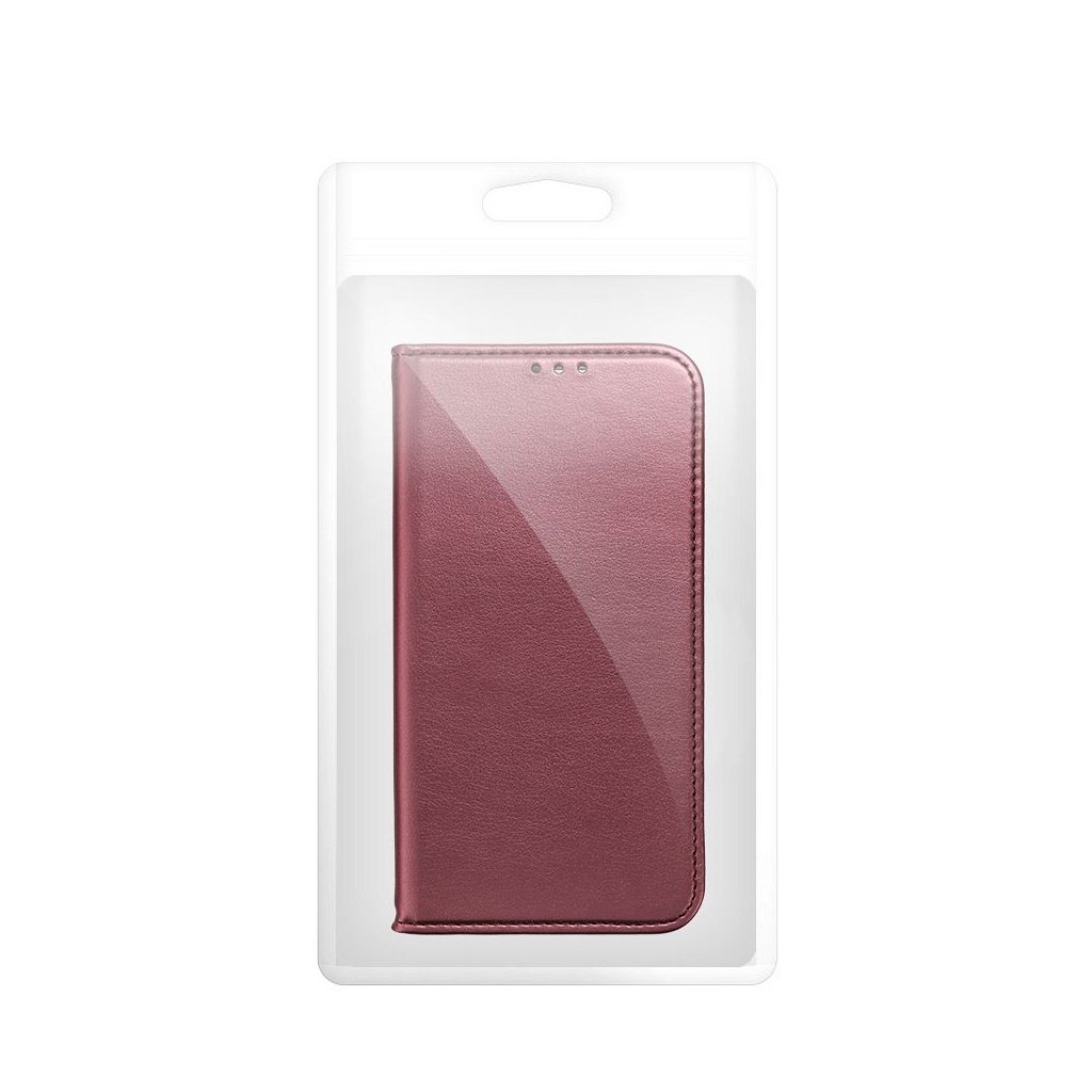 Peňaženkový obal SMART MAGNETO Book pre SAMSUNG S26 Edge bordový s magnetickým zapínaním je klasické puzdro na telefón s funkciou peňaženky a stojana na TV. Je vyrobené z metalizovaného materiálu, podšité mäkkou tkaninou, ktorá chráni obrazovku pred poškriabaním.