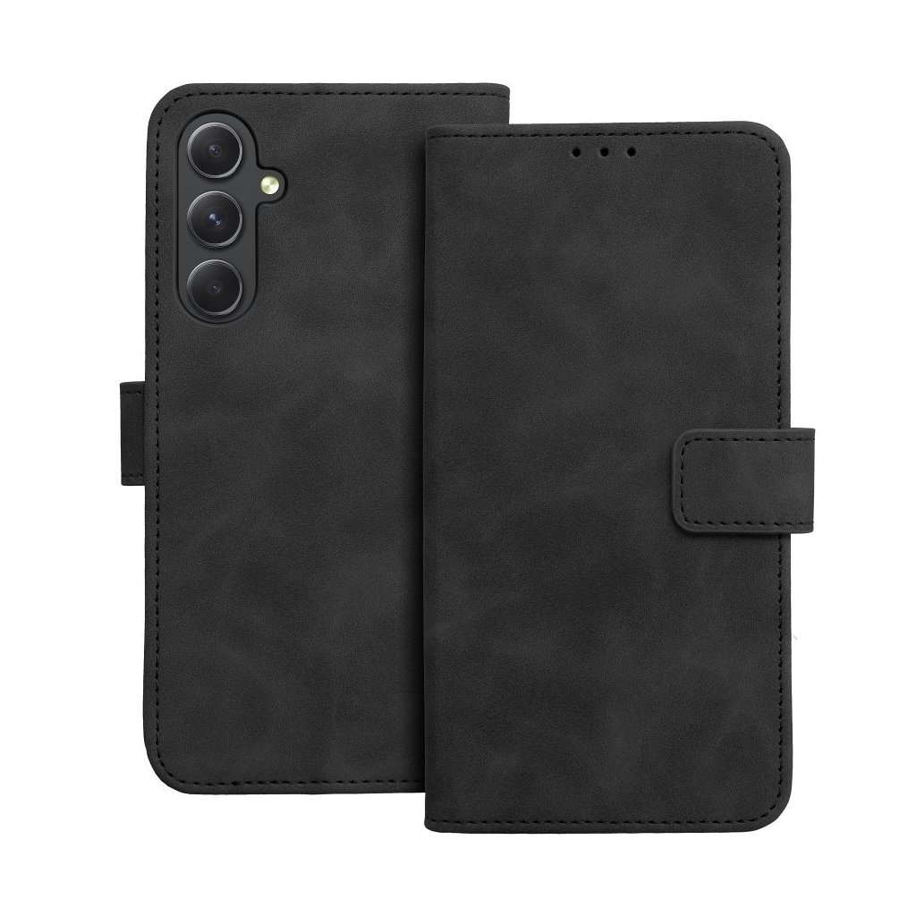 Zatvárací peňaženkový obal TENDER Book pre SAMSUNG A54 5G čierny v príjemnej imitácii kože v decentných farbách je ako stvorené pre každého, kto má skutočne štýl. Materiál je na dotyk veľmi príjemný a mäkký, telefónu ale poskytuje plnú ochranu zo všetkých strán.