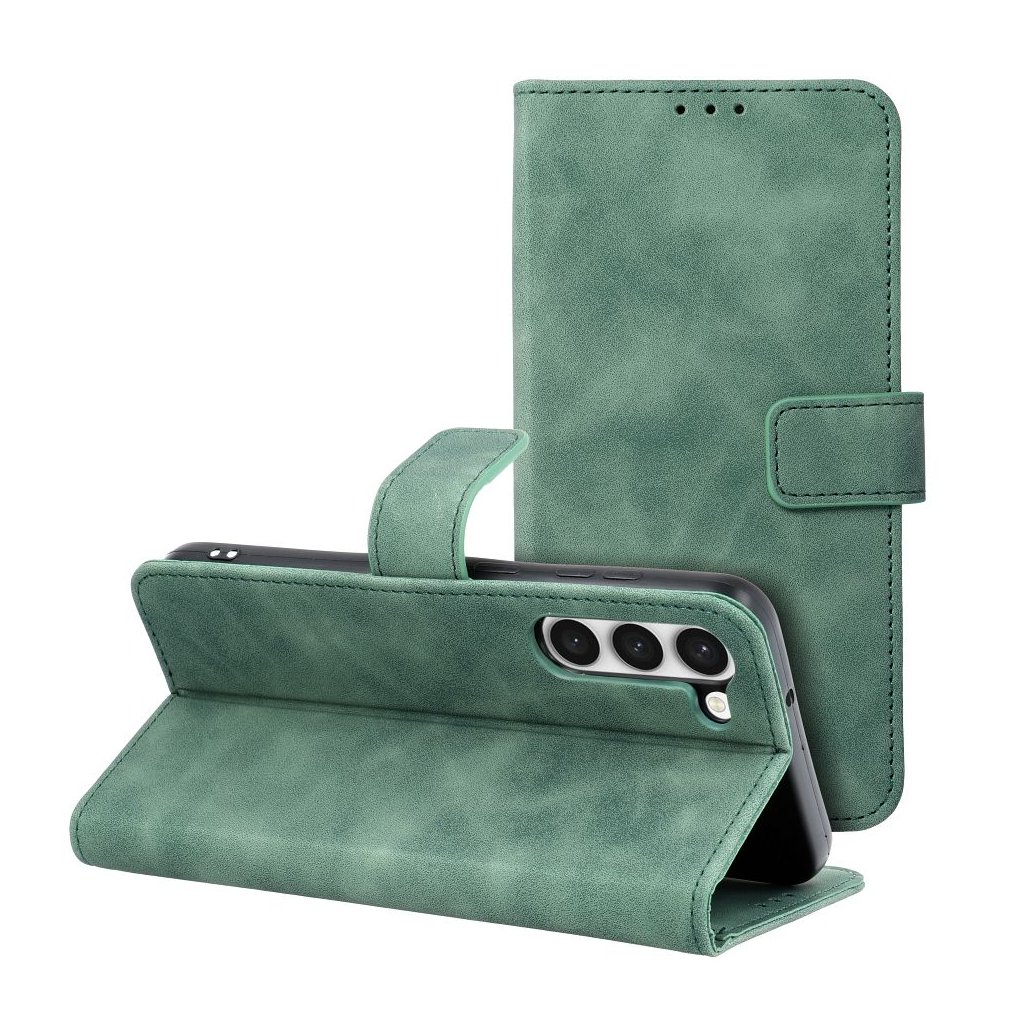 Zatvárací peňaženkový obal TENDER Book pre SAMSUNG S23 Plus zelený v príjemnej imitácii kože v decentných farbách je ako stvorené pre každého, kto má skutočne štýl. Materiál je na dotyk veľmi príjemný a mäkký, telefónu ale poskytuje plnú ochranu zo všetkých strán.
