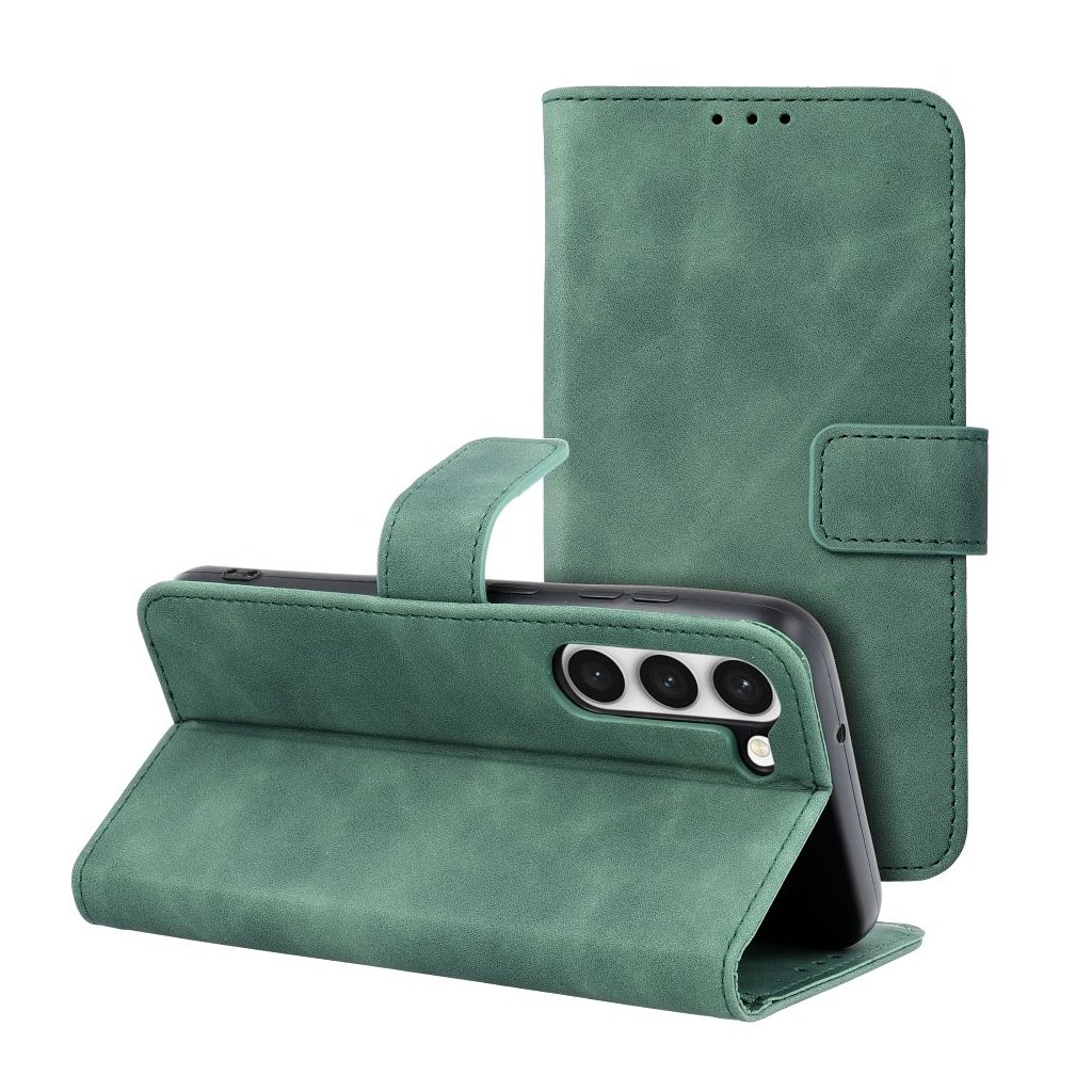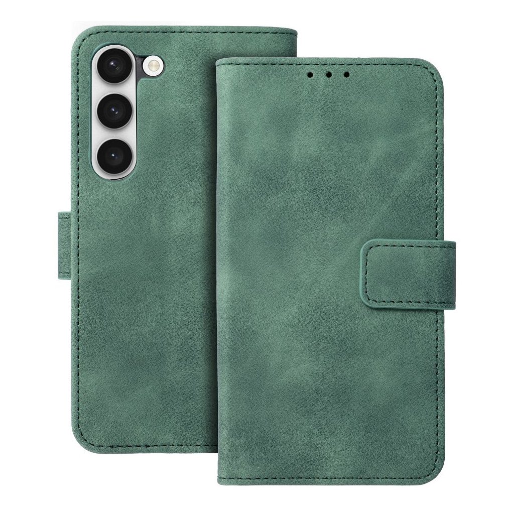 Zatvárací peňaženkový obal TENDER Book pre SAMSUNG S23 zelený v príjemnej imitácii kože v decentných farbách je ako stvorené pre každého, kto má skutočne štýl. Materiál je na dotyk veľmi príjemný a mäkký, telefónu ale poskytuje plnú ochranu zo všetkých strán.
