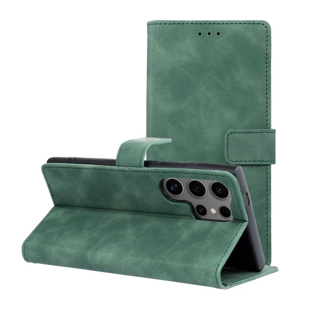 Zatvárací peňaženkový obal TENDER Book pre SAMSUNG S24 Ultra zelený v príjemnej imitácii kože v decentných farbách je ako stvorené pre každého, kto má skutočne štýl. Materiál je na dotyk veľmi príjemný a mäkký, telefónu ale poskytuje plnú ochranu zo všetkých strán.