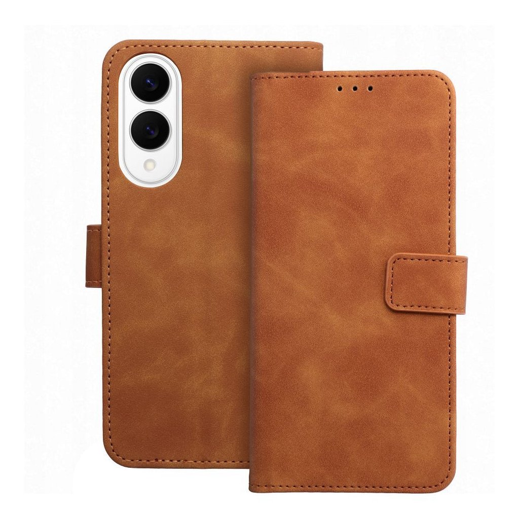 Zatvárací peňaženkový obal TENDER Book pre SAMSUNG S25 Edge hnedý v príjemnej imitácii kože v decentných farbách je ako stvorené pre každého, kto má skutočne štýl. Materiál je na dotyk veľmi príjemný a mäkký, telefónu ale poskytuje plnú ochranu zo všetkých strán.