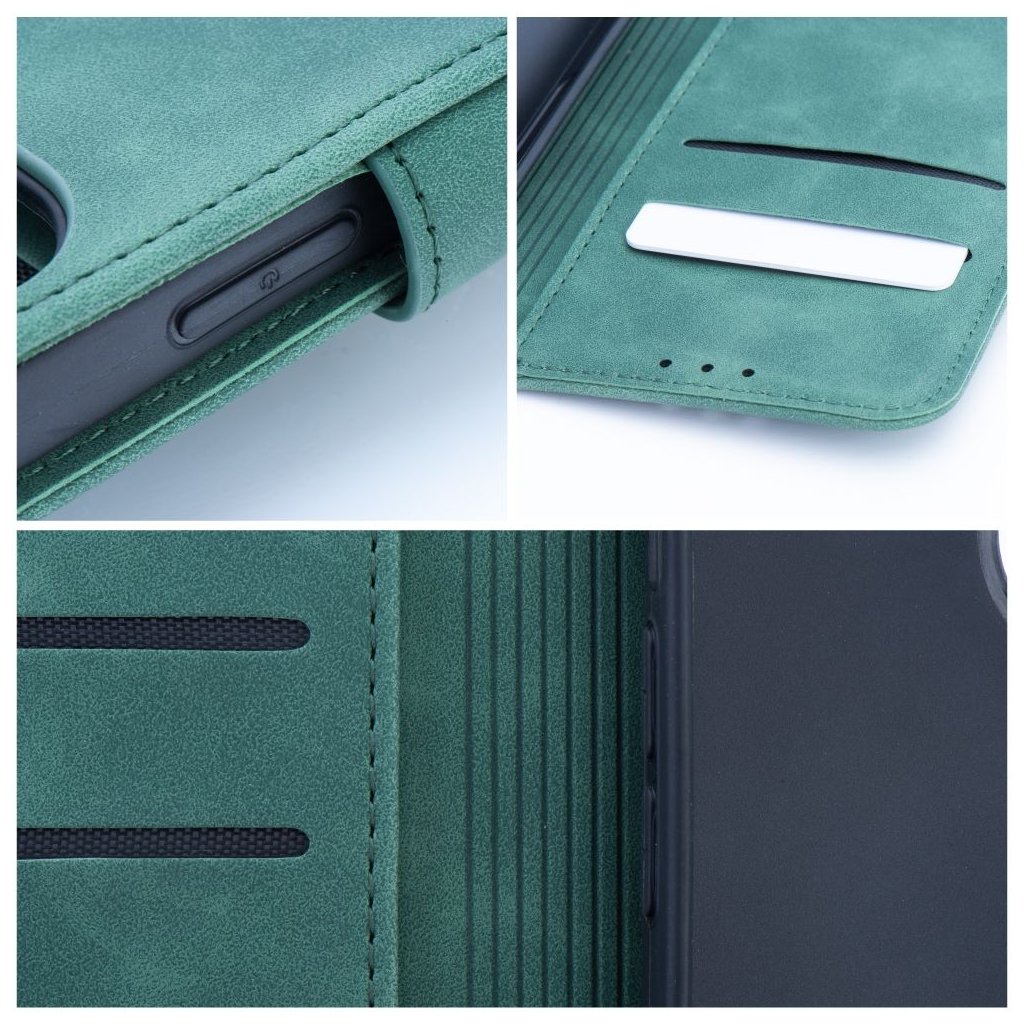 Zatvárací peňaženkový obal TENDER Book pre SAMSUNG S26 zelený v príjemnej imitácii kože v decentných farbách je ako stvorené pre každého, kto má skutočne štýl. Materiál je na dotyk veľmi príjemný a mäkký, telefónu ale poskytuje plnú ochranu zo všetkých strán.