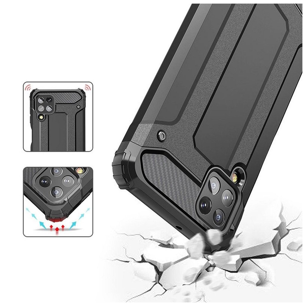 Pancierové puzdro Forcell ARMOR pre SAMSUNG A22 5G čierne je vyrobené z veľmi odolného plastu a termoplastického TPU. Táto hybridná konštrukcia zaisťuje extrémnu pevnosť a odolnosť. Dokonale tak ochráni váš telefón pred poškriabaním, poškodením či nečistotami.