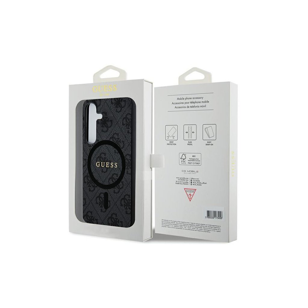 Štýlové a GUESS pre SAMSUNG S24 s MagSafe GUHCS24SGF4GGR (4G Ring classic logo) čierne je kvalitný obal na Váš telefón vyrobený z odolných materiálov, s prepracovanými detailmi a dizajnom.