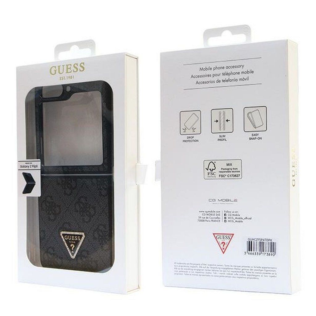 Štýlové a GUESS pre SAMSUNG Z Flip 5 GUHCZF5P4TDPK (4G Triangle Strass) čierne je kvalitný obal na Váš telefón vyrobený z odolných materiálov, s prepracovanými detailmi a dizajnom.