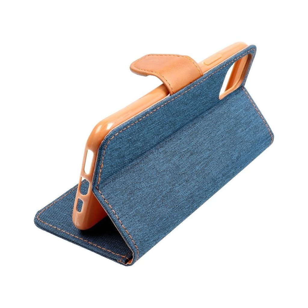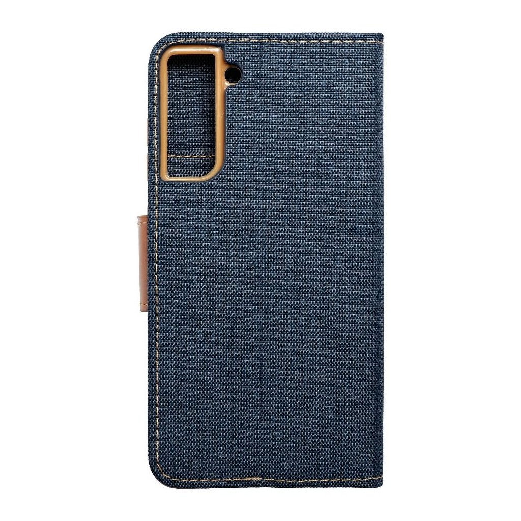 Knižkový obal na mobil CANVAS Book pre SAMSUNG S21 FE modrý je vyrobený z vysoko odolného plastu, ktorý je potiahnutý látkou imitujúcou džínsy a mäkkou technickou kožou vo vnútri. Váš telefón tak bude dokonale ochránený pred prípadným poškriabaním.