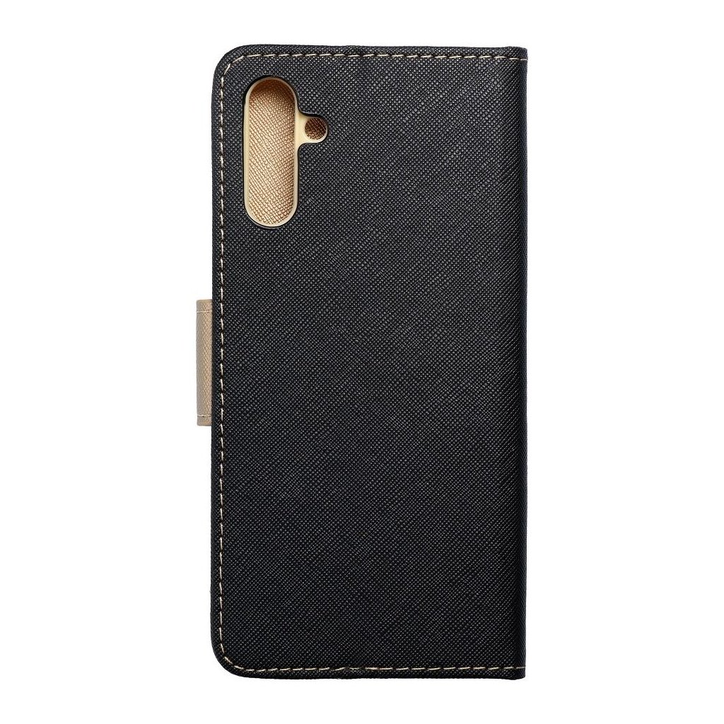 Obľúbené knižkové puzdro na mobil FANCY Book pre SAMSUNG A13 5G / A04S čierne / zlaté je vyrobené z vysoko kvalitnej mäkkej technickej kože, ktorá je na okrajoch prešívaná. Puzdro je teda nielen elegantné, ale aj pevnejšie a odolnenšie na každodenné používanie.