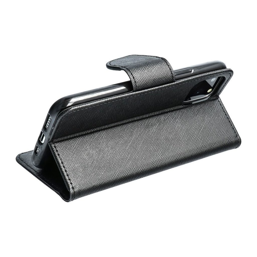 Knižkové puzdro FANCY Book pre SAMSUNG Galaxy J5 2017 čierne spája eleganciu a praktickosť. Magnetické zapínanie, prešívané okraje, 2 vrecká na dokumenty, TV stojan. Vyrobené z kvalitnej technickej kože.