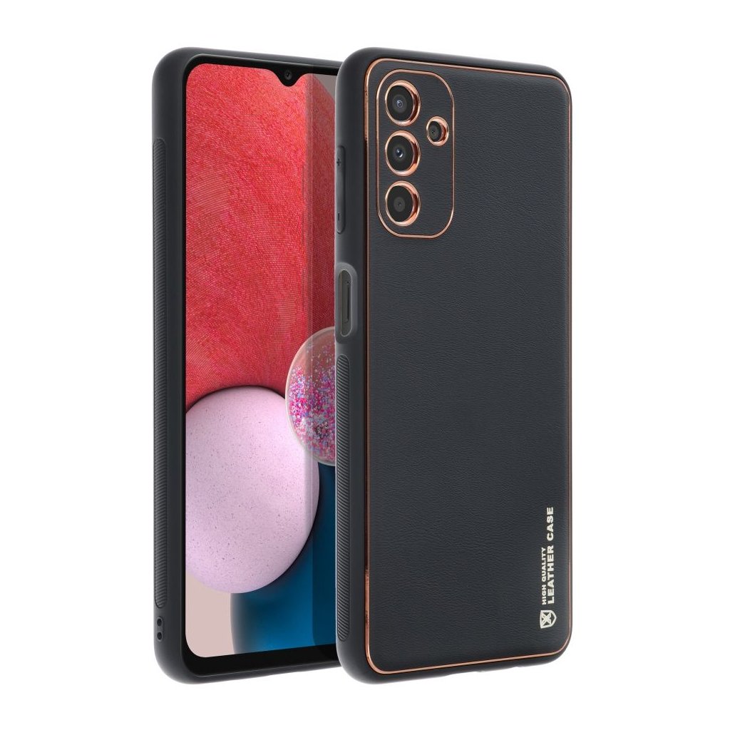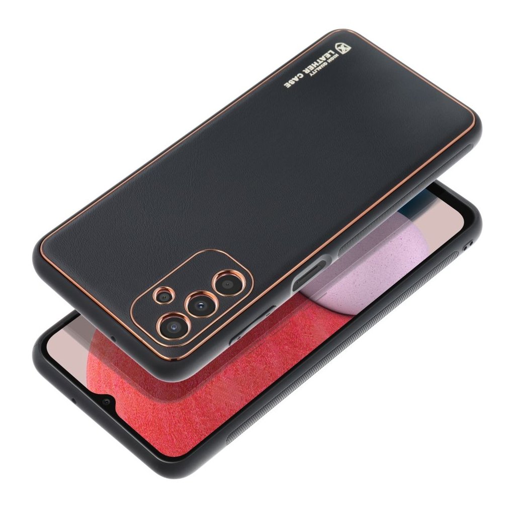 Originálny kryt z ekokože LEATHER case pre SAMSUNG A13 5G / A04S čierny je vyrobený z plastu a tej najkvalitnejšej imitácie kože. Je veľmi odolné, pevné a napriek tomu pomerne flexibilné. Jeho vysoko elegantný vzhľad dopĺňa zlatý rámik.