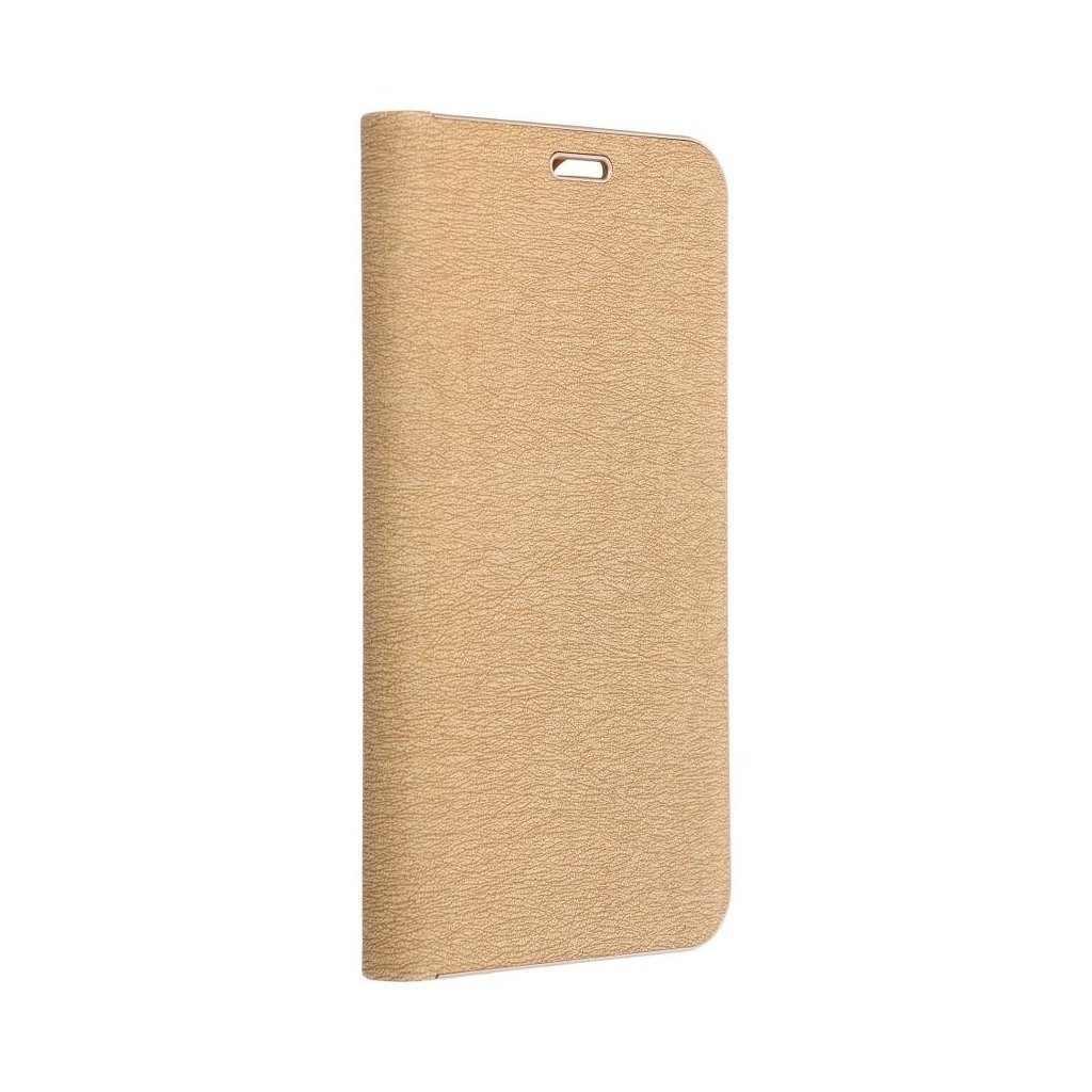 Peňaženkové puzdro LUNA Book pre SAMSUNG S20 FE / S20 FE 5G zlaté je vyrobené z kvalitnej mäkkej technickej kože s atraktívnou textúrou, ktorá je po okrajoch vystužená hliníkovým rámom. Puzdro je preto nielen veľmi elegantné, ale aj pevnejšie a stabilnejšie. Mäkká semišová úprava vnútornej strany puzdra zaručuje skvelú ochranu displeja pred poškriabaním.