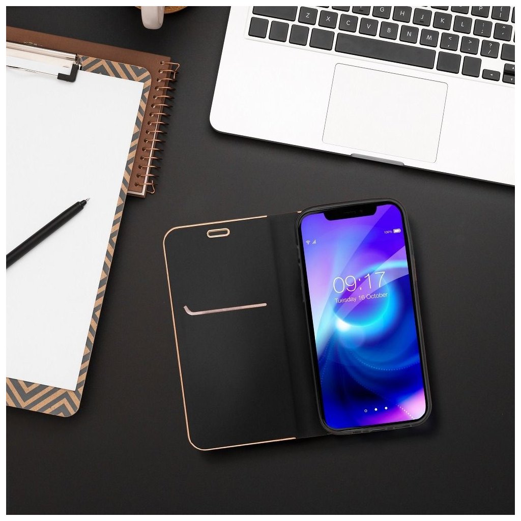 Vo vnútri knižkové puzdra Luna book nájdete flexibilný silikónový držiak, ktorý je prispôsobený pre váš mobil. Udrží váš telefón v stabilnej polohe a chráni jeho hrany. Na vnútornej strane sa nachádza aj vrecko, ktoré môžete využiť ako peňaženku alebo úložný priestor na doklady či karty.