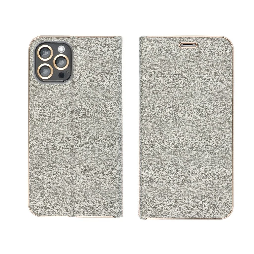 Peňaženkové puzdro LUNA Book pre SAMSUNG A21s strieborné je vyrobené z kvalitnej mäkkej technickej kože s atraktívnou textúrou, ktorá je po okrajoch vystužená hliníkovým rámom. Puzdro je preto nielen veľmi elegantné, ale aj pevnejšie a stabilnejšie. Mäkká semišová úprava vnútornej strany puzdra zaručuje skvelú ochranu displeja pred poškriabaním.
