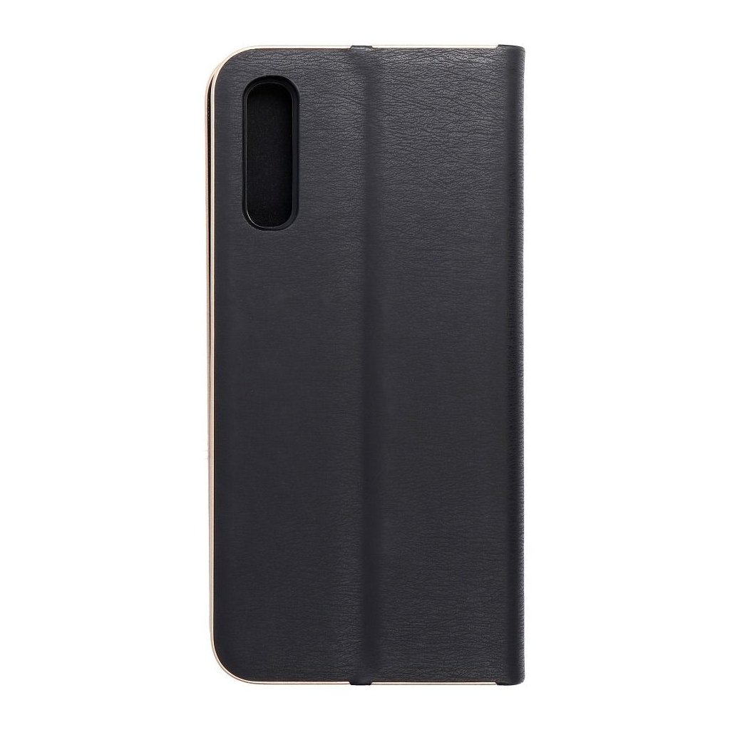 Peňaženkové puzdro LUNA Book pre SAMSUNG A50 čierne je vyrobené z kvalitnej mäkkej technickej kože s atraktívnou textúrou, ktorá je po okrajoch vystužená hliníkovým rámom. Puzdro je preto nielen veľmi elegantné, ale aj pevnejšie a stabilnejšie. Mäkká semišová úprava vnútornej strany puzdra zaručuje skvelú ochranu displeja pred poškriabaním.