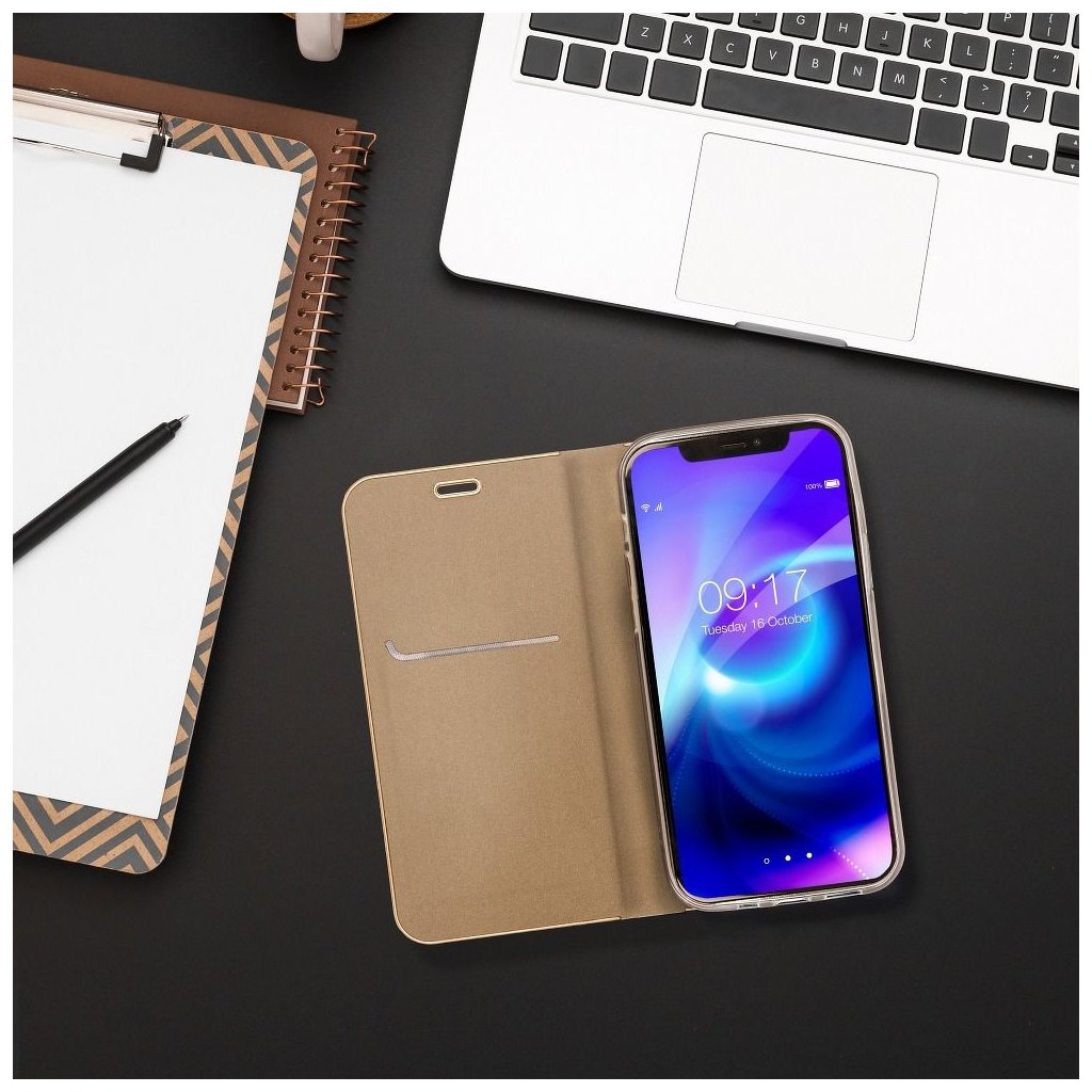 Vo vnútri knižkové puzdra Luna book nájdete flexibilný silikónový držiak, ktorý je prispôsobený pre váš mobil. Udrží váš telefón v stabilnej polohe a chráni jeho hrany. Na vnútornej strane sa nachádza aj vrecko, ktoré môžete využiť ako peňaženku alebo úložný priestor na doklady či karty.