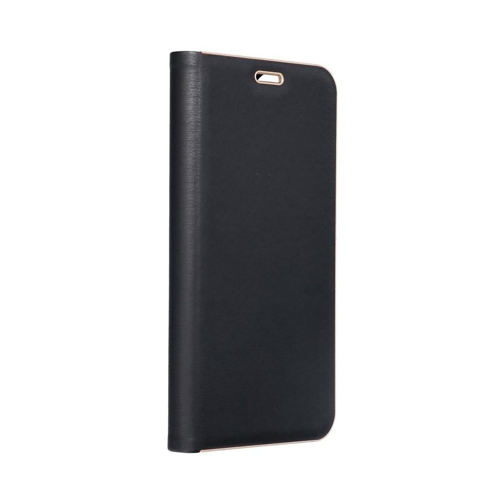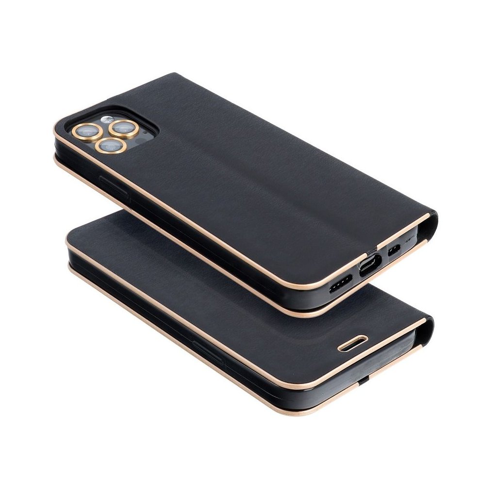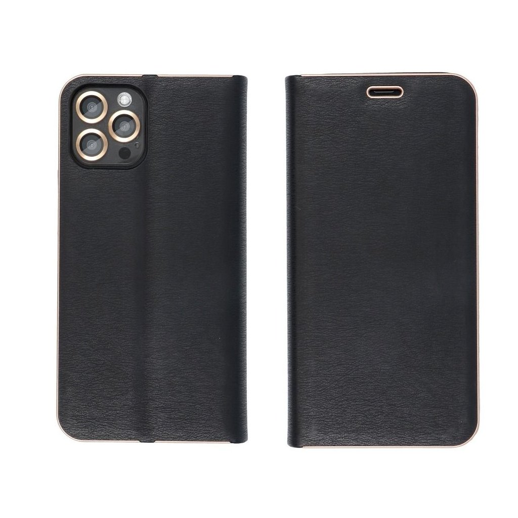 Peňaženkové puzdro LUNA Book pre SAMSUNG S21 čierne je vyrobené z kvalitnej mäkkej technickej kože s atraktívnou textúrou, ktorá je po okrajoch vystužená hliníkovým rámom. Puzdro je preto nielen veľmi elegantné, ale aj pevnejšie a stabilnejšie. Mäkká semišová úprava vnútornej strany puzdra zaručuje skvelú ochranu displeja pred poškriabaním.
