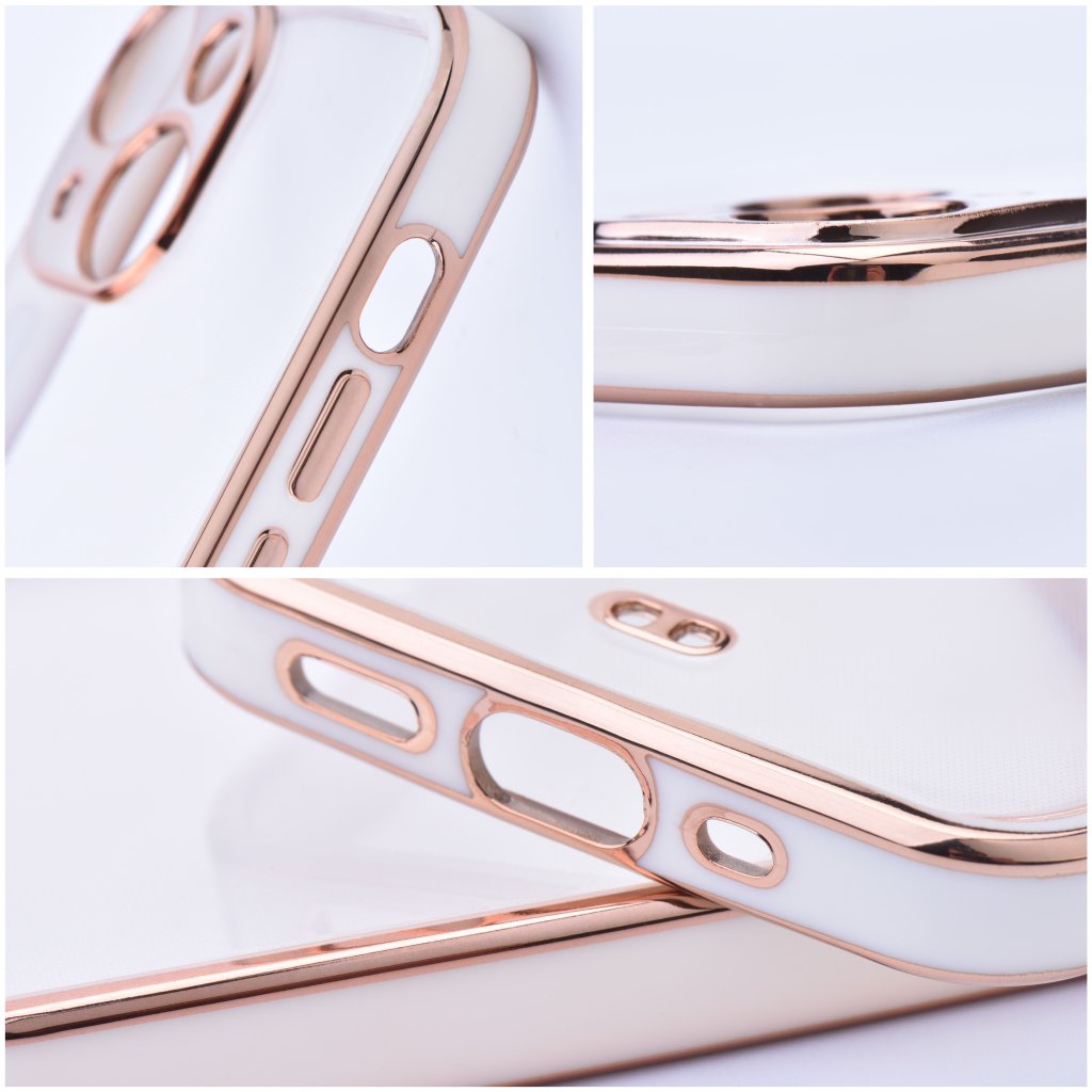 Obal Forcell LUX pre SAMSUNG Galaxy S21 Plus biely ponúka výnimočné spojenie transparentného krytu s krásnymi dizajnovými prvkami farebného rámčeka, zlatých hrán a ďalších detailov. Neobyčajné puzdro pre neobyčajných užívateľov!
