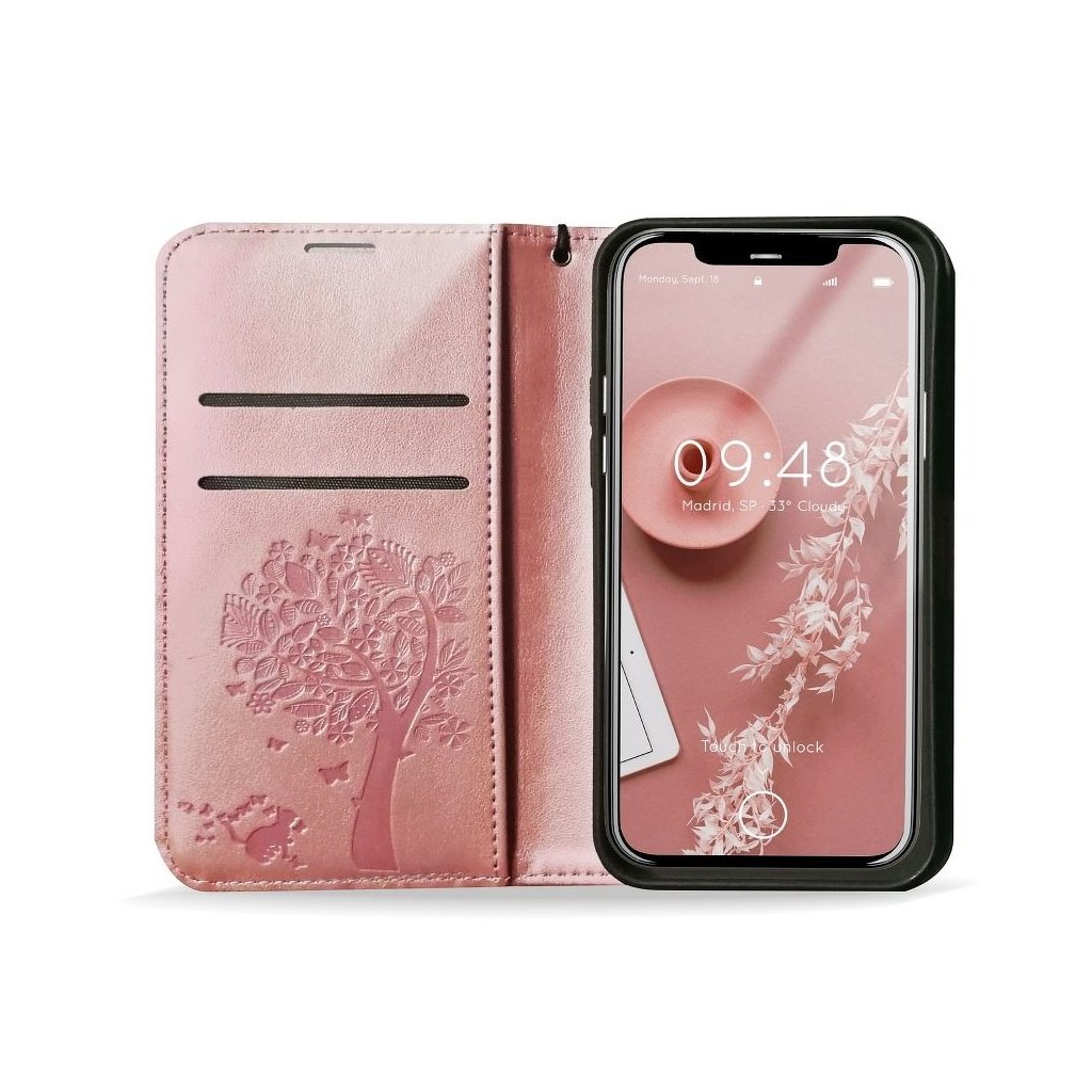 Peňaženkové / zatváracie Puzdro MEZZO Book pre SAMSUNG A32 5G strom - ružovo zlaté zaujme predovšetkým spracovaním vzoru mandaly, stromu, prípadne lapača snov. Oproti iným puzdrom podobného typu nie sú totiž vzory u puzdier Forcell Mezzo Book natlačené, ale vtlačené priamo do materiálu (ekologická koža). Vďaka tomu sa vzor jednak nezotrie, ale môžete ho naozaj na dotyk cítiť.