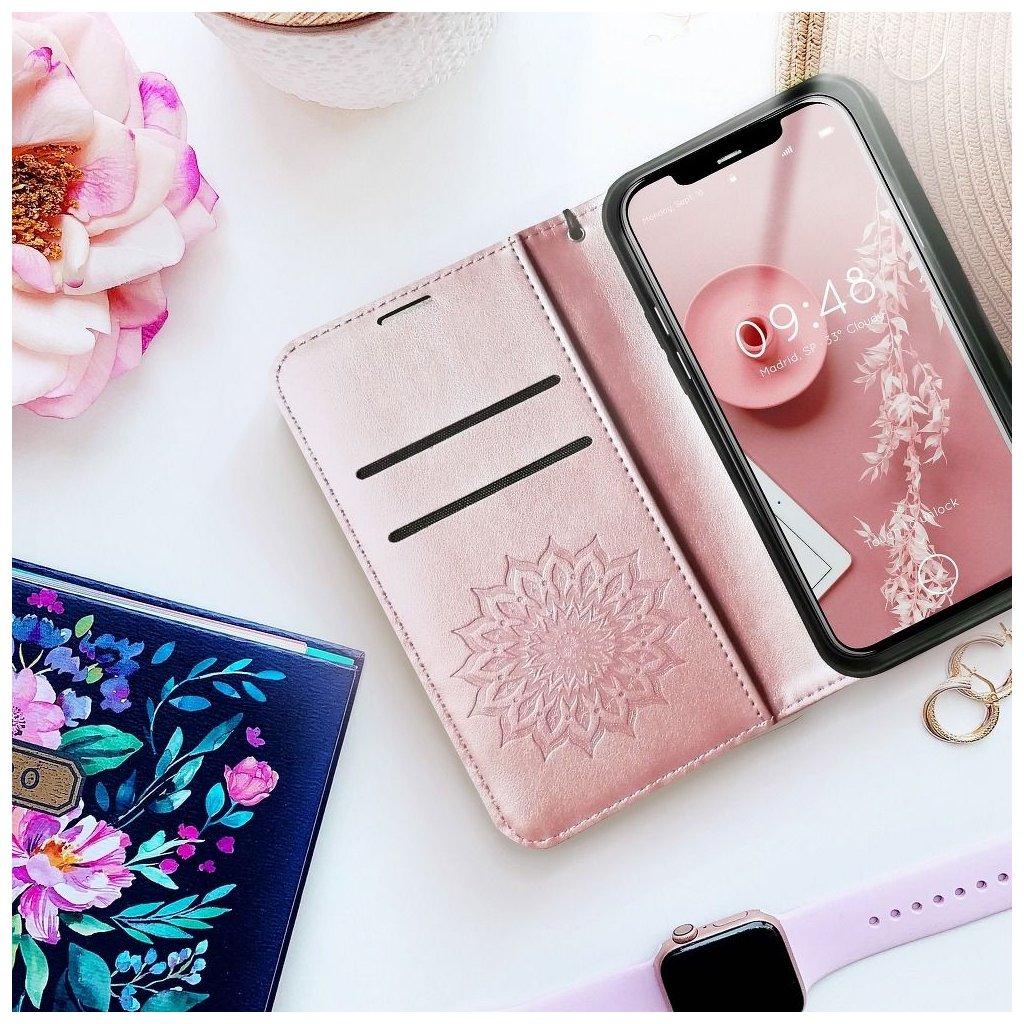 Peňaženkové / zatváracie Puzdro MEZZO Book pre SAMSUNG A32 5G mandala - ružovo zlaté zaujme predovšetkým spracovaním vzoru mandaly, stromu, prípadne lapača snov. Oproti iným puzdrom podobného typu nie sú totiž vzory u puzdier Forcell Mezzo Book natlačené, ale vtlačené priamo do materiálu (ekologická koža). Vďaka tomu sa vzor jednak nezotrie, ale môžete ho naozaj na dotyk cítiť.