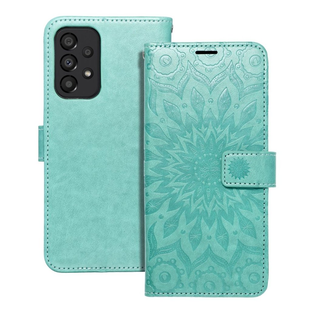Peňaženkové / zatváracie Puzdro MEZZO Book pre SAMSUNG A33 5G mandala - zelené zaujme predovšetkým spracovaním vzoru mandaly, stromu, prípadne lapača snov. Oproti iným puzdrom podobného typu nie sú totiž vzory u puzdier Forcell Mezzo Book natlačené, ale vtlačené priamo do materiálu (ekologická koža). Vďaka tomu sa vzor jednak nezotrie, ale môžete ho naozaj na dotyk cítiť.