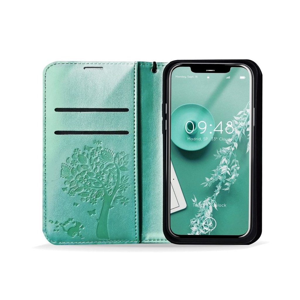 Peňaženkové / zatváracie Puzdro MEZZO Book pre SAMSUNG A52 5G / A52 LTE ( 4G ) / A52s 5G strom - zelené zaujme predovšetkým spracovaním vzoru mandaly, stromu, prípadne lapača snov. Oproti iným puzdrom podobného typu nie sú totiž vzory u puzdier Forcell Mezzo Book natlačené, ale vtlačené priamo do materiálu (ekologická koža). Vďaka tomu sa vzor jednak nezotrie, ale môžete ho naozaj na dotyk cítiť.